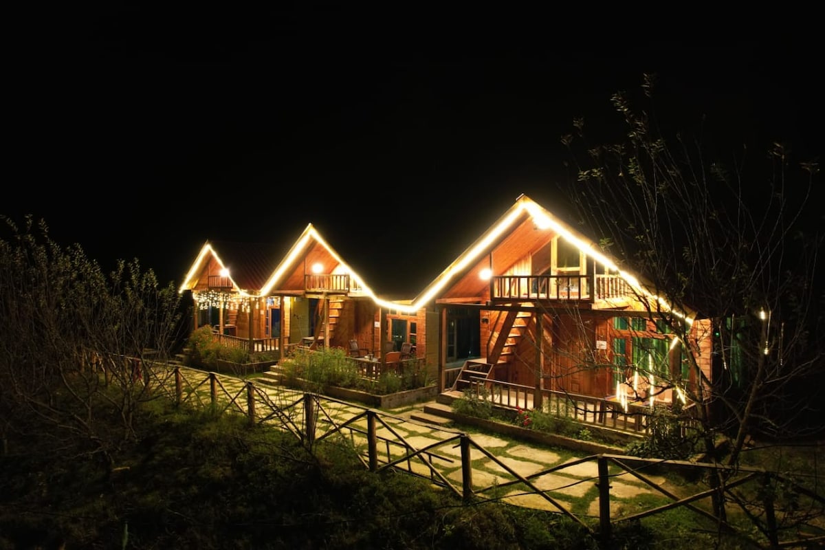 Willkommen im The Wyld – 5 gemütliche A-Rahmen-Blockhütten in Thata, Seraj, Tirthan Valley. Manchmal ist es magisch. Manchmal ist es ein bisschen zu magisch. Umgeben von Kiefernwäldern, Apfelbäumen, Flüssen und Wanderwegen ist dies dein Zufluchtsort für Barfußmorgende, Lagerfeuer und langsame Tage, die sich auf die beste Weise ausdehnen. Perfekt, um nichts (schön) oder alles (in deinem eigenen Tempo) zu tun. Komm für die Aussicht, bleib für das Gefühl.