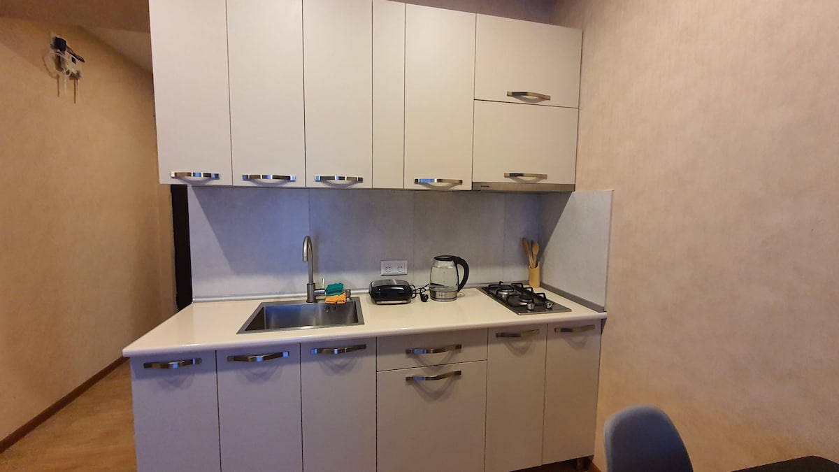 Vom zentral gelegenen 4-Sterne-Hotel aus hast du einfachen Zugang zu allem. Gleich da sind schöne Parks, eine Waldzone für frische Luft und es ist 3 Gehminuten vom Winter entfernt, der beste Winter-Olympiade 2023 Skigebiet Didveli mit Seilbahnen. Die 40 m ² große Wohnung ist im Studio-Stil mit einem großen Balkon. Die Betten haben Bettwäsche, Handtücher, alles benötigte Geschirr und einen Toaster, Wasserkocher, Wasserkocher, Waschmaschine. Die Wohnung befindet sich in der vierten Etage und bietet eine perfekte Aussicht. Der Pool ist vorübergehend außer Betrieb.