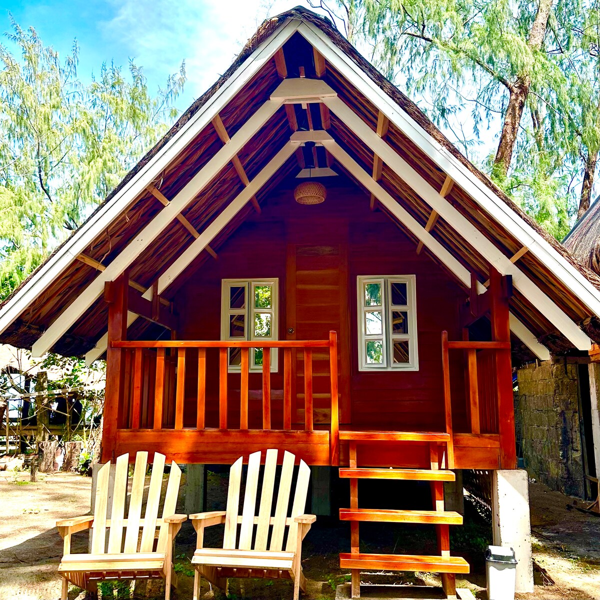 Entfliehe in dieses gemütliche, handgefertigte Baumhaus, das nur wenige Schritte vom Strand entfernt liegt! Das Baumhaus verfügt über: Ein privates, erhöhtes Zimmer aus einheimischen Materialien mit einem überdachten Balkon Lounge- und Essbereich im Freien unter dem Haus für entspanntes Leben im Freien Ideal für Paare, kleine Familien oder Alleinreisende, die abschalten und wieder in Einklang mit der Natur kommen möchten.