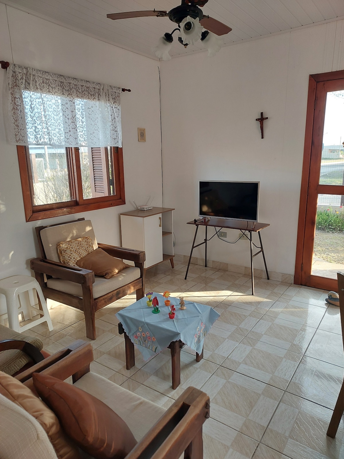 Ambiente com excelente posição solar, arejada, além disso conta com Wi-Fi e ar condicionado. A casa é super equipada com tudo que é necessário para sua estadia. A localização é central, a vizinhança tranquila e fica próxima à beira mar. O espaço interno aconchegante e a área externa com pátio grande e churrasqueira. Há redes para descanso e espaço para estacionar. Pets são bem vindos.