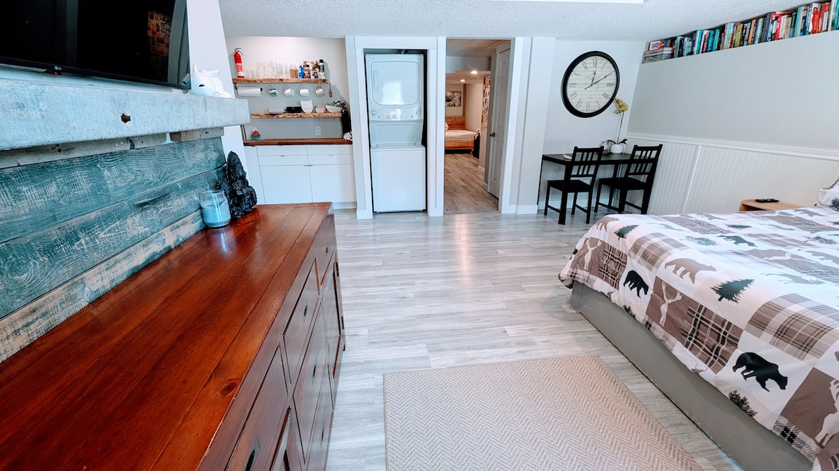 Diese gemütliche Keller-Suite mit 1 Schlafzimmer ist perfekt für Paare oder Alleinreisende. Egal, ob du nach Banff, Lake Louise oder in die Berge reist oder einfach nur einen Ort in Calgary zum Entspannen suchst, dies ist der ideale Ort für dich. Erstklassige Lage • 12 Minuten vom Flughafen Calgary entfernt • 20 Minuten bis zur Innenstadt von Calgary • 2 Minuten vom Stoney Trail und Deerfoot entfernt, mit schnellem Zugang über Calgary und direkt nach Banff und in die Berge. • Nur wenige Minuten von McDonald's, Tim Hortons Costco und No Frills entfernt.