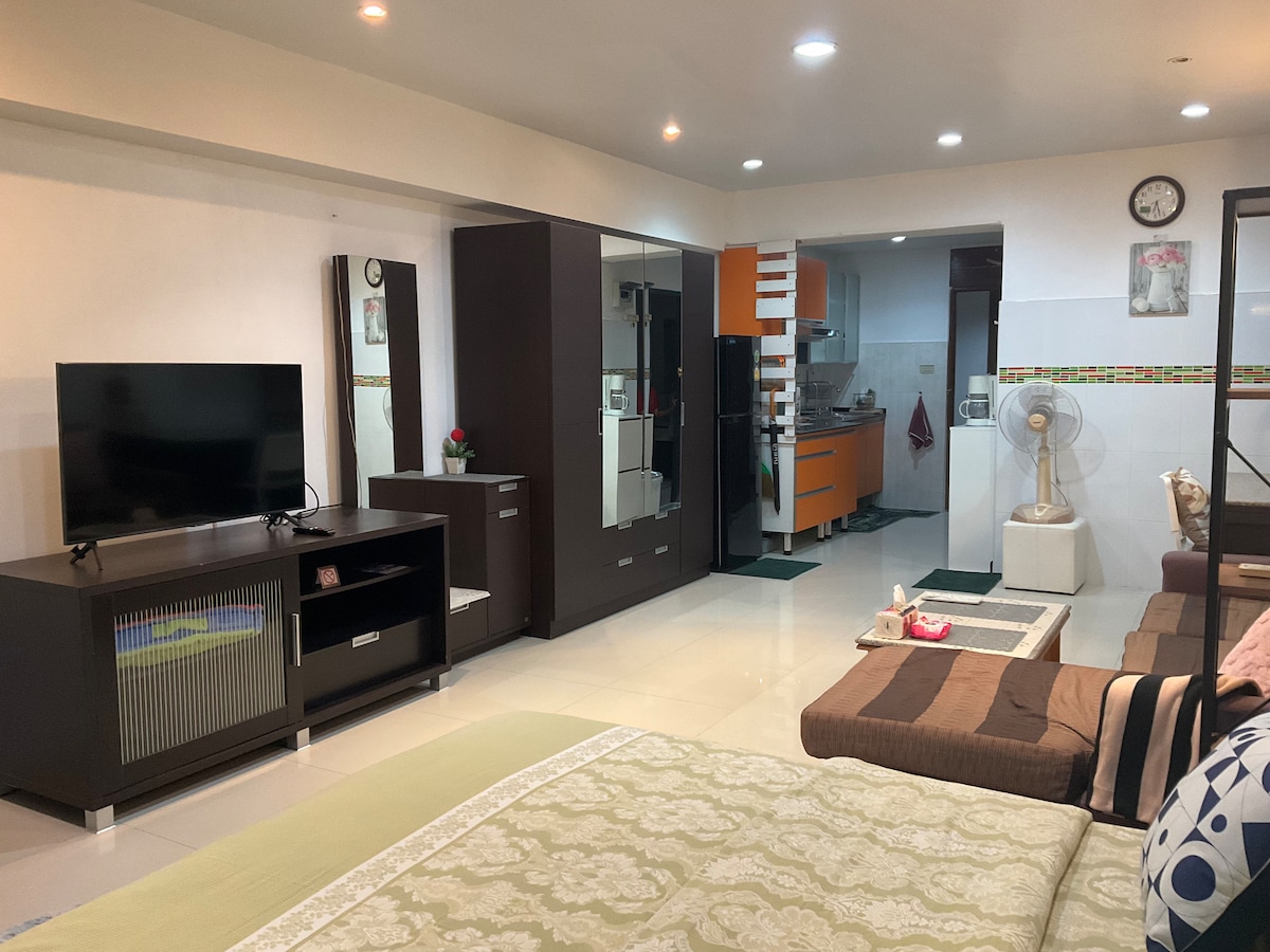 Diese geräumige Einheit auf der obersten Etage mit tollem Blick auf die Stadt. Gut ausgestattete Küche, Wohnbereich, Schreibtisch und Kingsize-Bett. Schöne Dusche mit heißem Wasser. Schöner Balkon mit tollem Licht der Stadt. Schöne offene Einheit, sehr geräumig, ideal für einen langen Aufenthalt.
