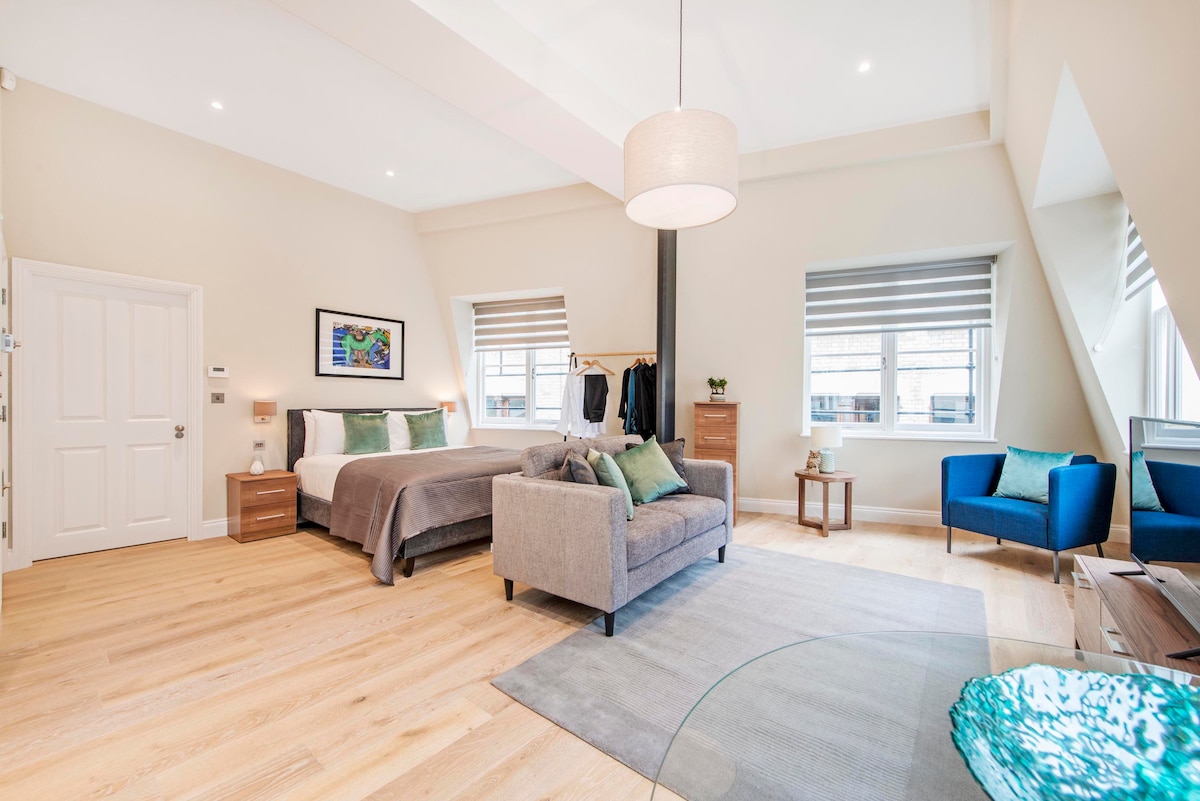 Luxuriöses Battersea-Studio mit offenem Kamin, in der Nähe des Parks