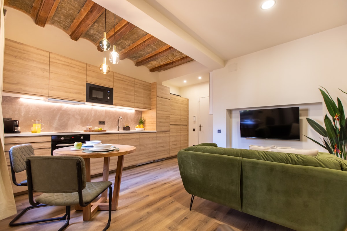 Hier bist du genau richtig, um eine unvergessliche Wohnung zu finden! Unser elegantes Zen-Studio ist von der visuellen Ästhetik Südostasiens inspiriert und basiert auf einer sehr interessanten Mischung aus edlen Materialien wie Bambus und Seide, was ihm eine ruhige und warme Atmosphäre verleiht. Die Essecke fängt die Sonne und das natürliche Licht ein und bietet einen spektakulären Blick auf Las Rambles. Und sei dir sicher, dass du keine zentraler gelegene Wohnung finden wirst!