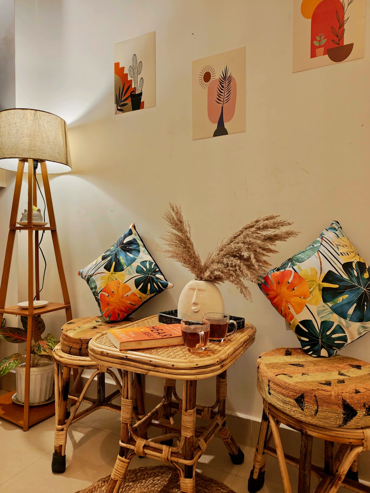 🌿 Modernes Designer-Retreat | Gemütliches 1BHK mit voll ausgestatteter Küche Entspanne dich in dieser stilvollen, durchdachten Unterkunft – perfekt für Paare, Alleinreisende oder kleine Familien. Das Schlafzimmer verfügt über ein bequemes Kingsize-Bett, sanftes Licht und einen beruhigenden Hauch von Grün. Entspanne dich im schicken floralen Loungesessel und auf der Ottomane. Koche in der separaten Küche, die mit Mikrowelle, Wasserreiniger und dem wichtigsten Kochgeschirr ausgestattet ist.