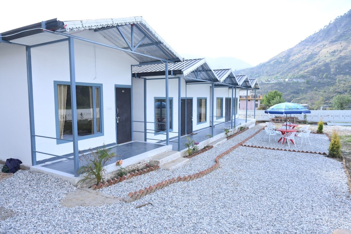 Tons River Retreat ist ein friedlicher Bauernhof am Fluss in Uttarakhand, nur 30 Minuten vom Mahasu Devta Tempel entfernt. Erreiche die Ferienhäuser mit einer malerischen Seilbahn, die den Fluss Tons überquert, und genieße einen atemberaubenden Blick auf das Tal. Wir bieten 2 gemütliche Ferienhäuser mit allen Annehmlichkeiten, einen eigenen Kamin, haustierfreundliche Räume und Abenteuer wie Klettern, Kajakfahren und Spaziergänge am Flussufer – perfekt für Familien und Angehörige
