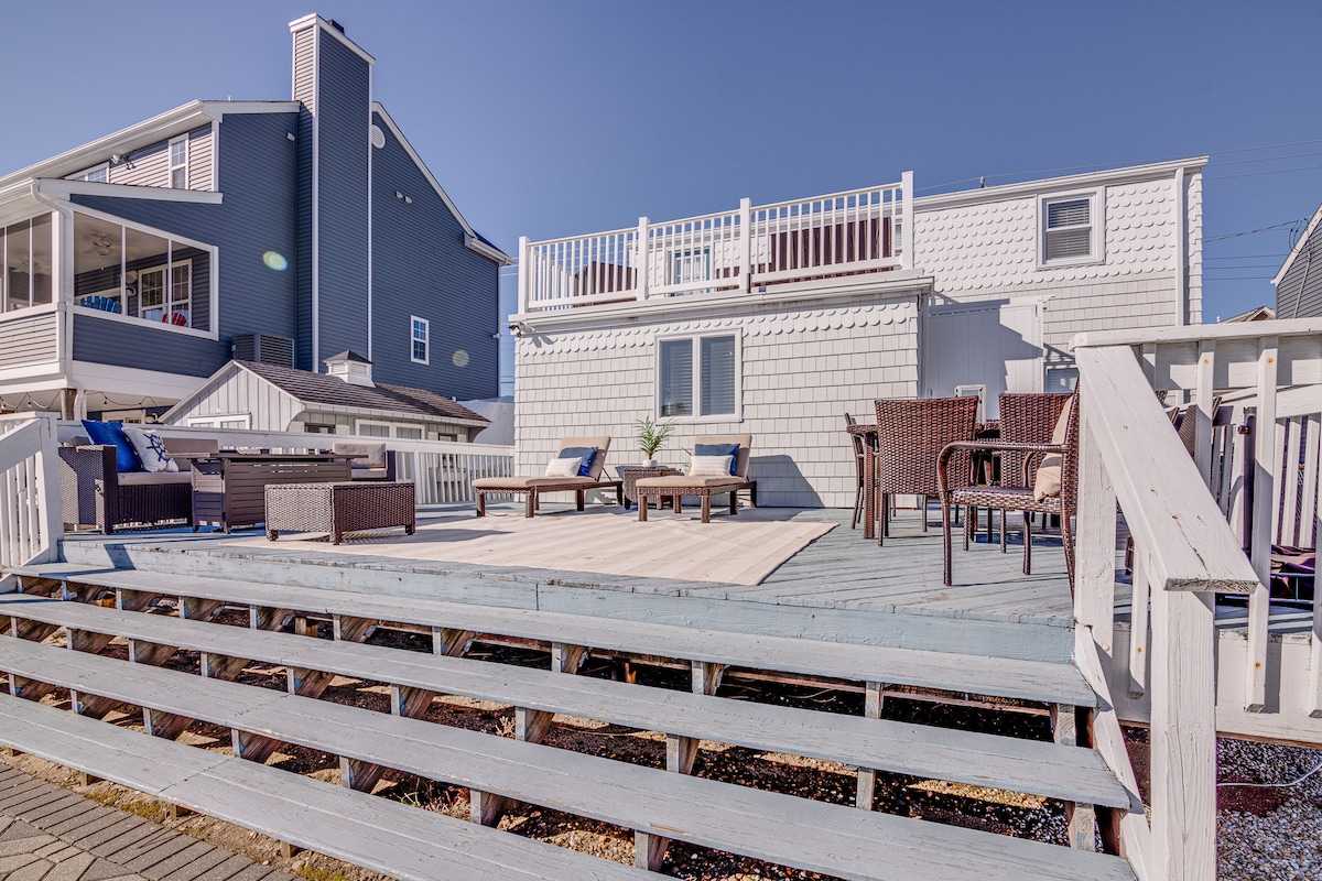 1/2 Block zum Strand, auf LBI, offener und heller Raum, schöne ebenerdige Veranda fĂŒr die Sonne am Morgen und Leute, die zusehen. Parkplatz fĂŒr 2 Autos. Ruhige Lage am begehrten Ocean Blvd in Brant Beach, LBI, aber nur wenige Gehminuten von Fahrradverleih, MeeresfrĂŒchten und Eiscreme entfernt. BITTE BEACHTE: 10.07.2026 bis 28.08.2026 â nur Vermietung von Freitag bis Freitag.