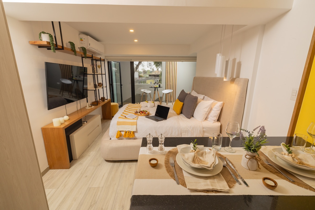 Este loft elegante fue diseñado hasta el último detalle. Ubicado en Barranco, límite con Miraflores y a pocos minutos del mar, se encuentra en un edificio con todo lo que necesitarás incluyendo Gym, piscina en el piso 24 con vista panorámica de la ciudad, área coworking y billar (requiere reserva anticipada). Ofrecemos GRATIS: •café y café descafeinado •Wifi de alta velocidad •piscina (menos lunes) •gym •cocina completa •auto checkin •Cama y almohadas muy cómodas •SmartTv 55'': Prime video