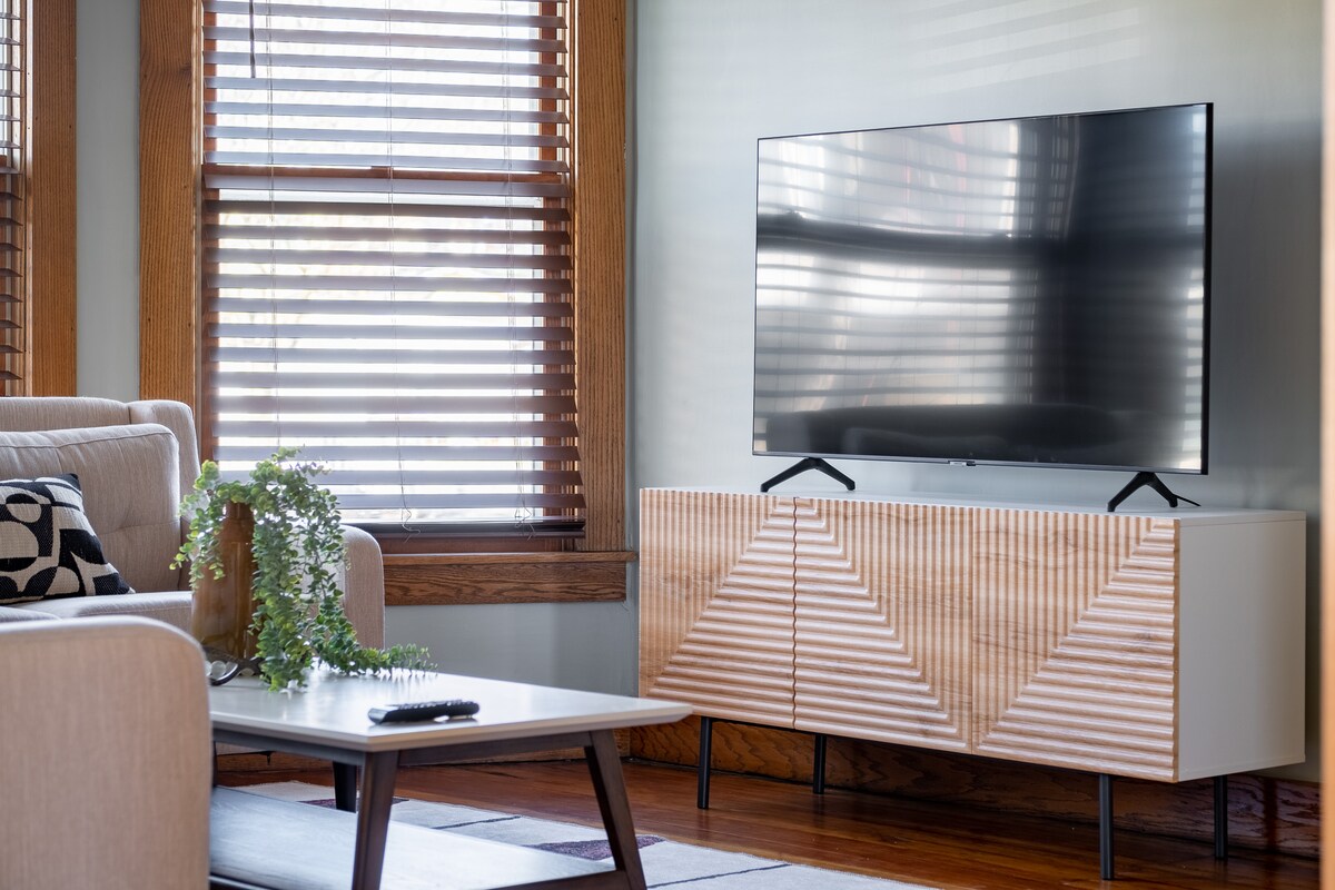 Geräumiges Haus mit 3 Ebenen und viel Unterhaltungsraum im Freien. Von dieser zentral gelegenen Unterkunft aus hast du einfachen Zugang zu allem. Das Haus verfügt über Tempur-Pedic-Matratzen mit verstellbaren Unterlagen in den Hauptschlafzimmern im ersten und zweiten Stock. Komfortable und gemütliche Smith Brothers- und Lazy Boys-Möbel auf allen 3 Ebenen. Das Haus verfügt über Roku-Fernseher und einen großen Roku-Fernseher, der perfekt für einen Filmabend im Keller geeignet ist. Die Terrasse verfügt über ein XL Big Green Egg, einen Solo-Herd und gemütliche Sitzgelegenheiten im Freien.
