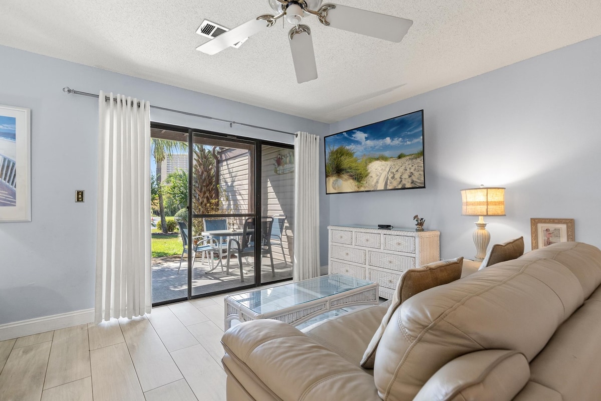 Zu den Annehmlichkeiten des Edgewater Resorts gehören ein riesiger Lagunenpool mit Felsenwasserfall, 10 Pools und 4 Whirlpools, ein 9-Loch-Par-3-Golfplatz, 11 Tennisplätze, Shuffleboard, Pickleball, Basketball, Spa und Fitness-Center. Eine Fußgängerbrücke bietet direkten Strandzugang und Golfcarts fahren herum und bieten während der wärmeren Jahreszeiten Fahrten an. Du wirst keinen besseren Ort am Strand finden!