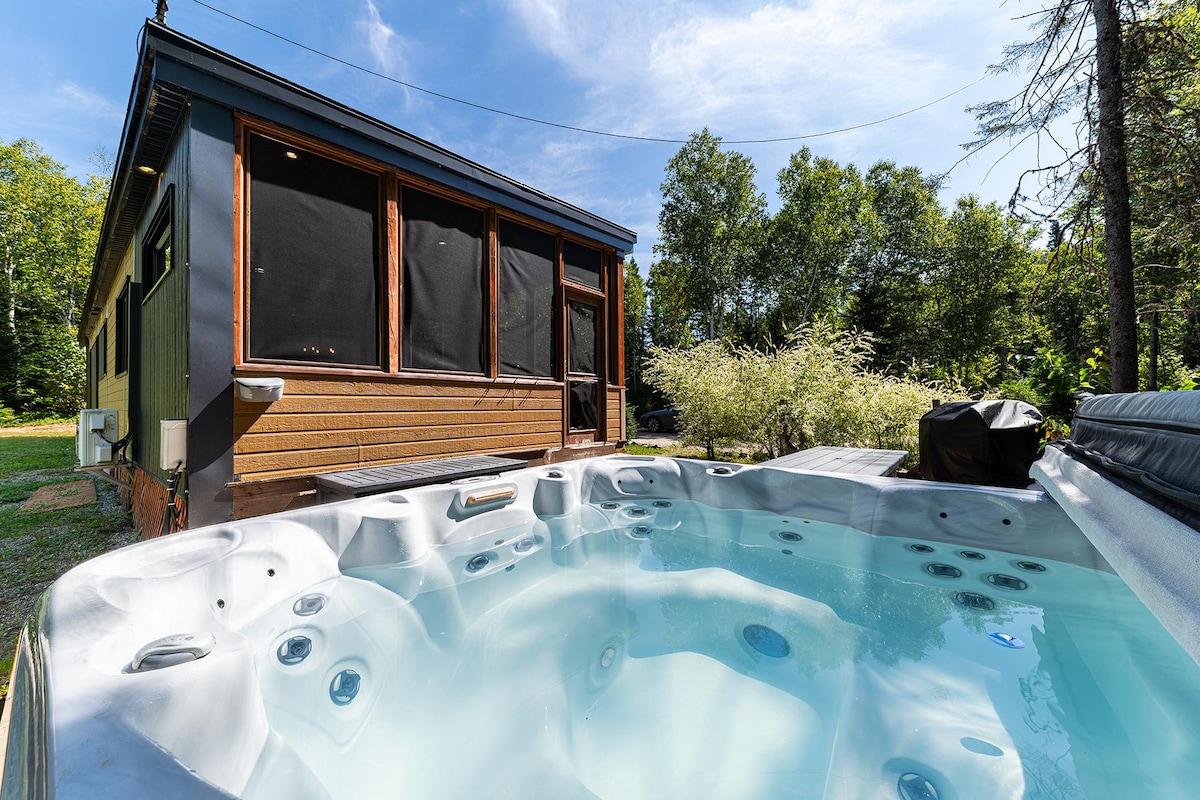 Großes Chalet, das problemlos Platz für bis zu 14 Personen bietet! Mit einem Holzkamin im Innenbereich und einem Spa im Freien wird dieses Ferienhaus deinen Aufenthalt noch angenehmer machen! Du wirst von dem vollständig bewaldeten Gelände begeistert sein, das sich ideal für Schneeschuhwanderungen im Winter oder die Erkundung der Natur im Sommer eignet, aber vor allem vom schwimm- oder schiffbaren See für kleine/Mini-Boote, die vor Ort verfügbar sind. Dieses Chalet wird alle Aktivitäten der Familie erfüllen! *Hunde können laut sein, wenn sie gefragt werden.