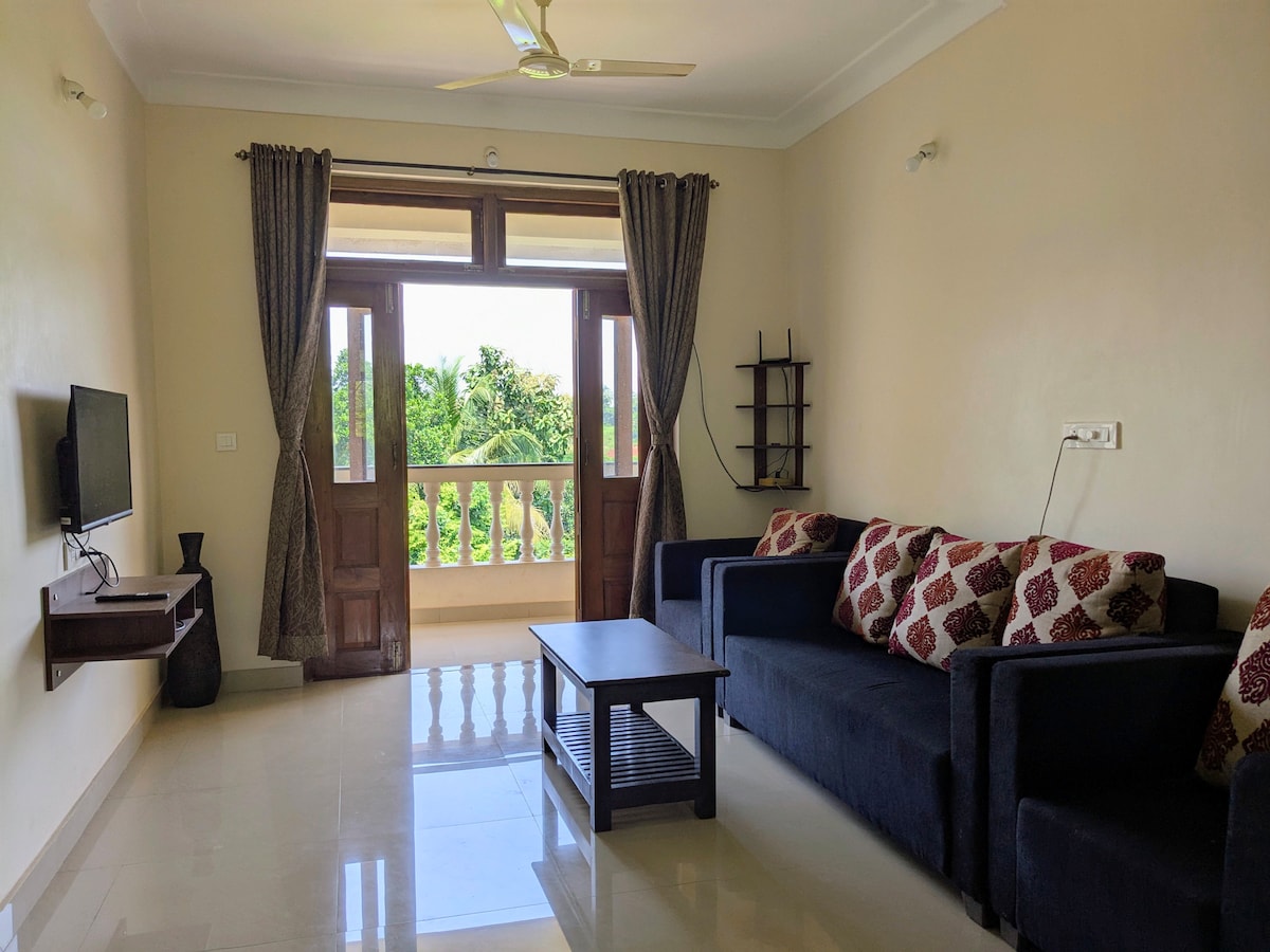 Check plant image in living room. Rates are for 2 people. A peaceful stay in the Marcela Village, major temples like Shri MahaGanapati Temple -Khandola, Shri DevkiKrishna Devasthan, Shri Shantadurga Kumbharjuvekarin temple and many more. The place is a completely fully furnished placed with all amenities such as 43" smart tv, fully automatic washing machine, refrigerator, kitchen setup, water purifier, bedroom with air conditioner, high speed internet and lush green trees. No heavy blankets.