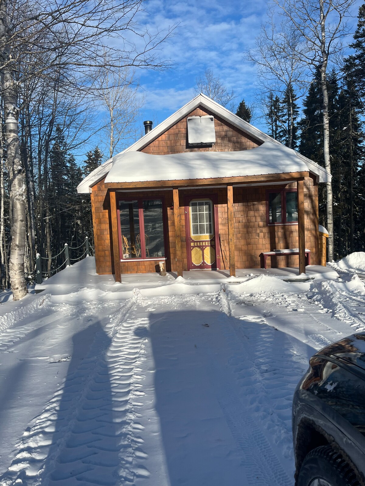 Traumhafte Lage in Belle-Baie auf dem 100 Hektar großen Gelände des Chalets Chaleur, umgeben vom Peters River! In der Nähe der Strände von Baie des Chaleurs! 🌟 Elegantes Ferienhaus mit 2 Schlafzimmern (Bettwäsche inbegriffen), Wohnzimmer und Küche. Außengrill. Genieße die Natur im Wald, einen 10-minütigen Spaziergang vom Meer entfernt! Die Strände Youghall und Beresford sind bereit, dich zu begrüßen. Im Winter direkter Zugang zu Skipisten und schönen Waldspaziergängen. Um unsere Unterkünfte zu sehen: chaletschaleur .com
