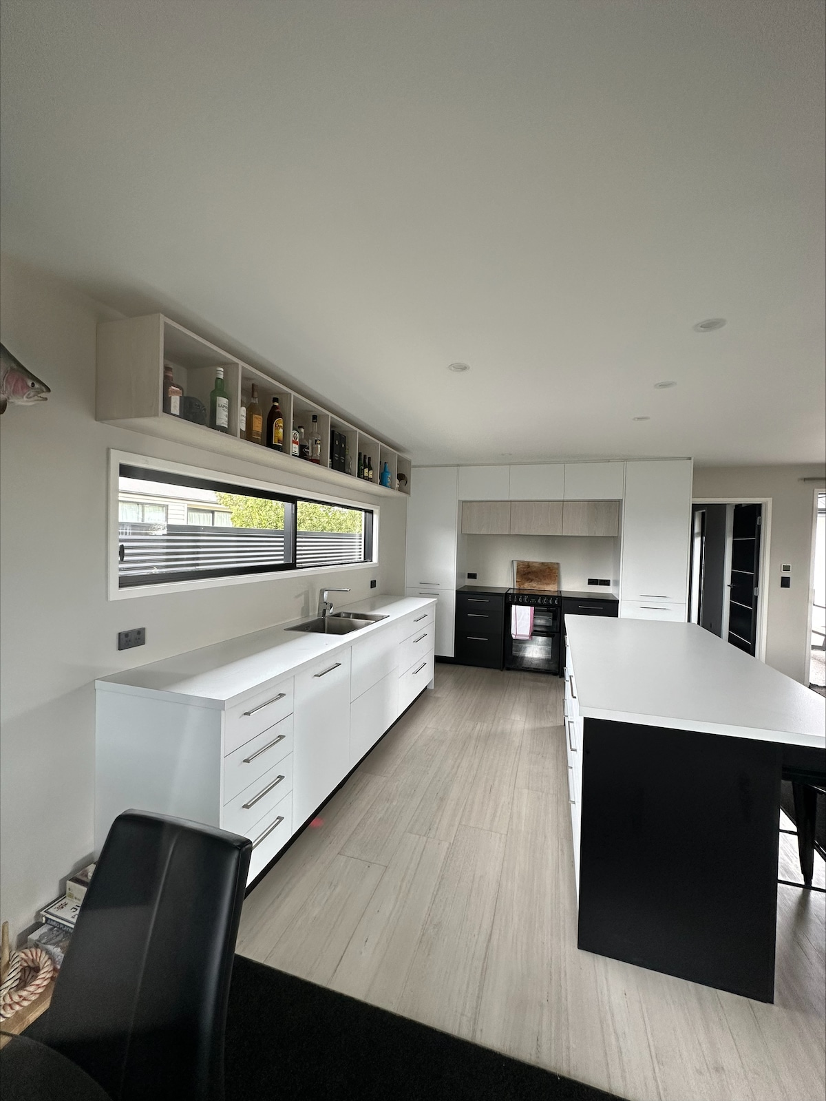 Das Brown House war 2020 in Neuseelands schlimmster Brandkatastrophe, die das Dorf verwüstete, tragischerweise verloren. Die preisgekrönte Architektin Lisa Webb, die das erste Brown House entworfen hatte, wurde beauftragt, den Wiederaufbau zu gestalten. Die Ergebnisse sind genauso atemberaubend Dieser Rückzugsort mit vier Schlafzimmern bietet Platz für bis zu zehn Gäste. Jedes Schlafzimmer bietet eine atemberaubende Aussicht. Das Haus verfügt über zwei Wohnbereiche, einen eigenen Büroraum, zwei Badezimmer und eine voll ausgestattete Küche.