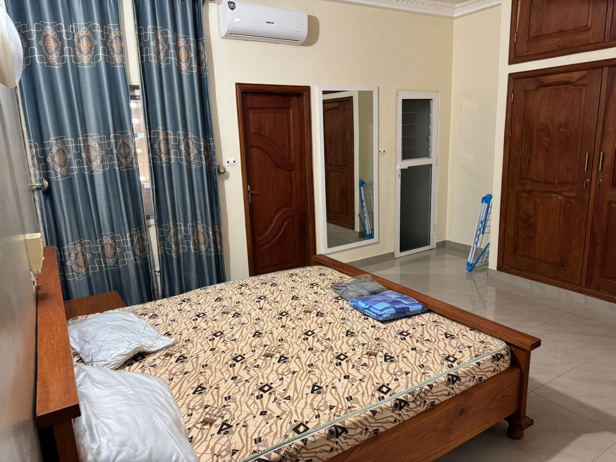 3-Zimmer-Wohnung in Fidjrossè befindet sich: - 500 m vom Strand von Fidjrossè entfernt - 10 Minuten vom Flughafen entfernt. Die Wohnung liegt in einem sicheren Wohngebiet und ist komplett modern eingerichtet und klimatisiert. Gemütliche Einrichtung (2 Schlafzimmer + Wohnzimmer + Terrasse + Küche + WC & Dusche mit Warmwasser) Diese Wohnung ist der ideale Ort, um einen angenehmen Aufenthalt zu verbringen. Die Wohnung verfügt auch über einen Außenparkplatz, der von einem täglich anwesenden Sicherheitsbeamten überwacht wird.