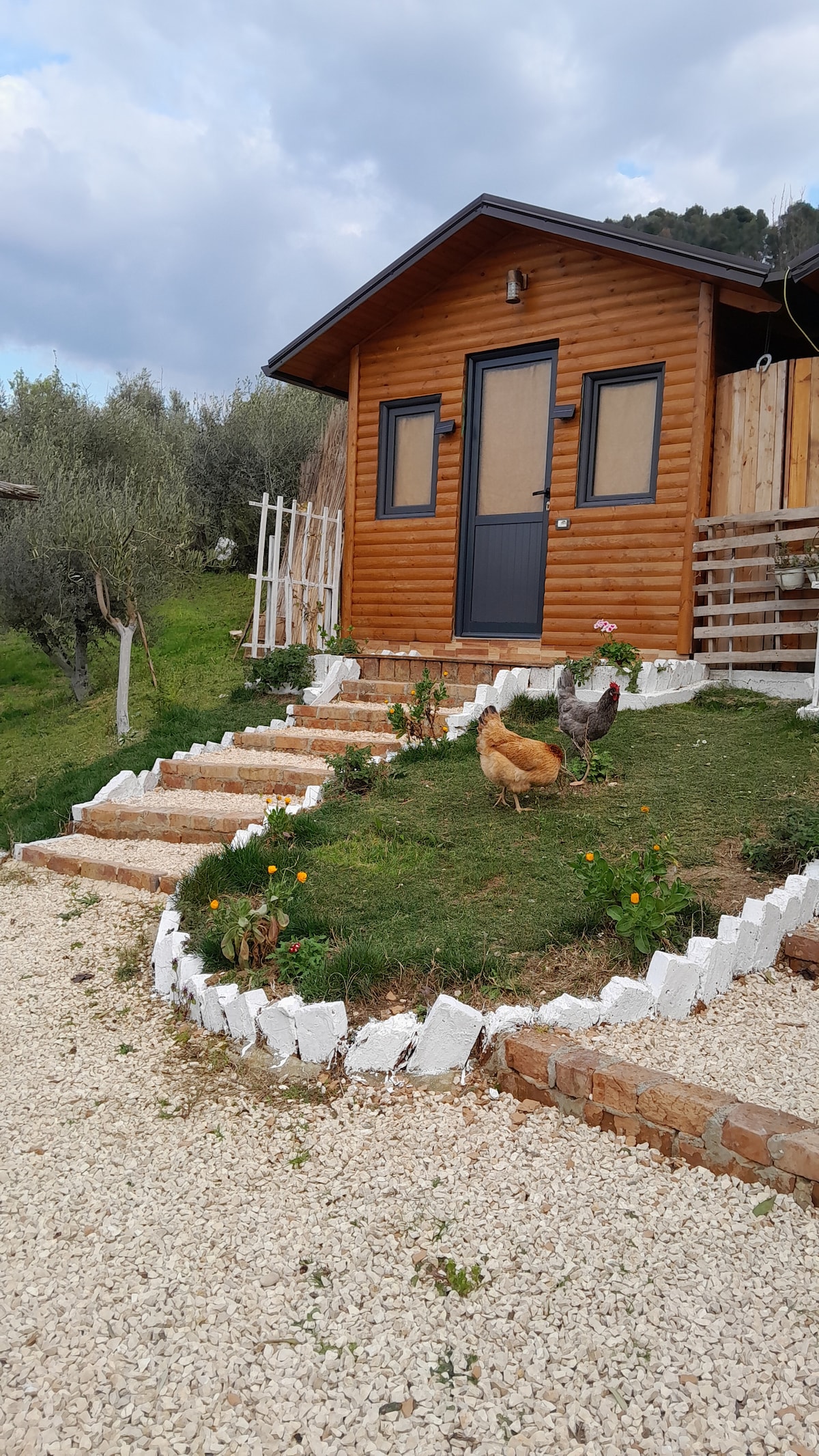 Der Ort liegt am Hang mit Olivenhainen und anderen Bäumen. 3 Minuten mit dem Auto 10 Minuten zu Fuß vom Zentrum von Berat entfernt. Der Ort mit Blick auf das Schloss, daneben befindet sich der Kiefernwald. Die Unterkunft ist dauerhaft grün (nicht zementiert), es gibt Hühner mit kleinen Vögeln. Die Umgebung ist für diejenigen, die saubere Luft, Ruhe und eine tolle Aussicht wollen. Entspannen. Miresetevini