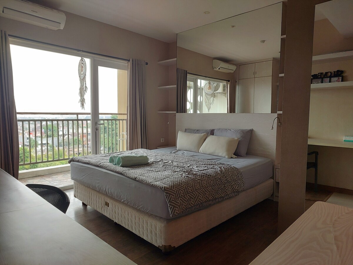 Studio-Apartment (24 m2) befindet sich im Barsa City Tower Cornell in der Jalan Laksda Adisucipto KM. 7, Janti, Sleman, DIY (in der Nähe der Janti-Überführung). - Ambarrukmo Plaza (5 Minuten) - Souvenir-Center entlang der Jogja-Solo-Straße - Prambanan Tempel, Boko Tempel, Breksi Klippe - Malioboro (20 Minuten) - Tugu Station, Lempuyangan Station (20 Minuten) - Busbahnhof Giwangan (15 Minuten) und in der Nähe von einigen anderen Touristen- und kulinarischen Zielen in Jogja