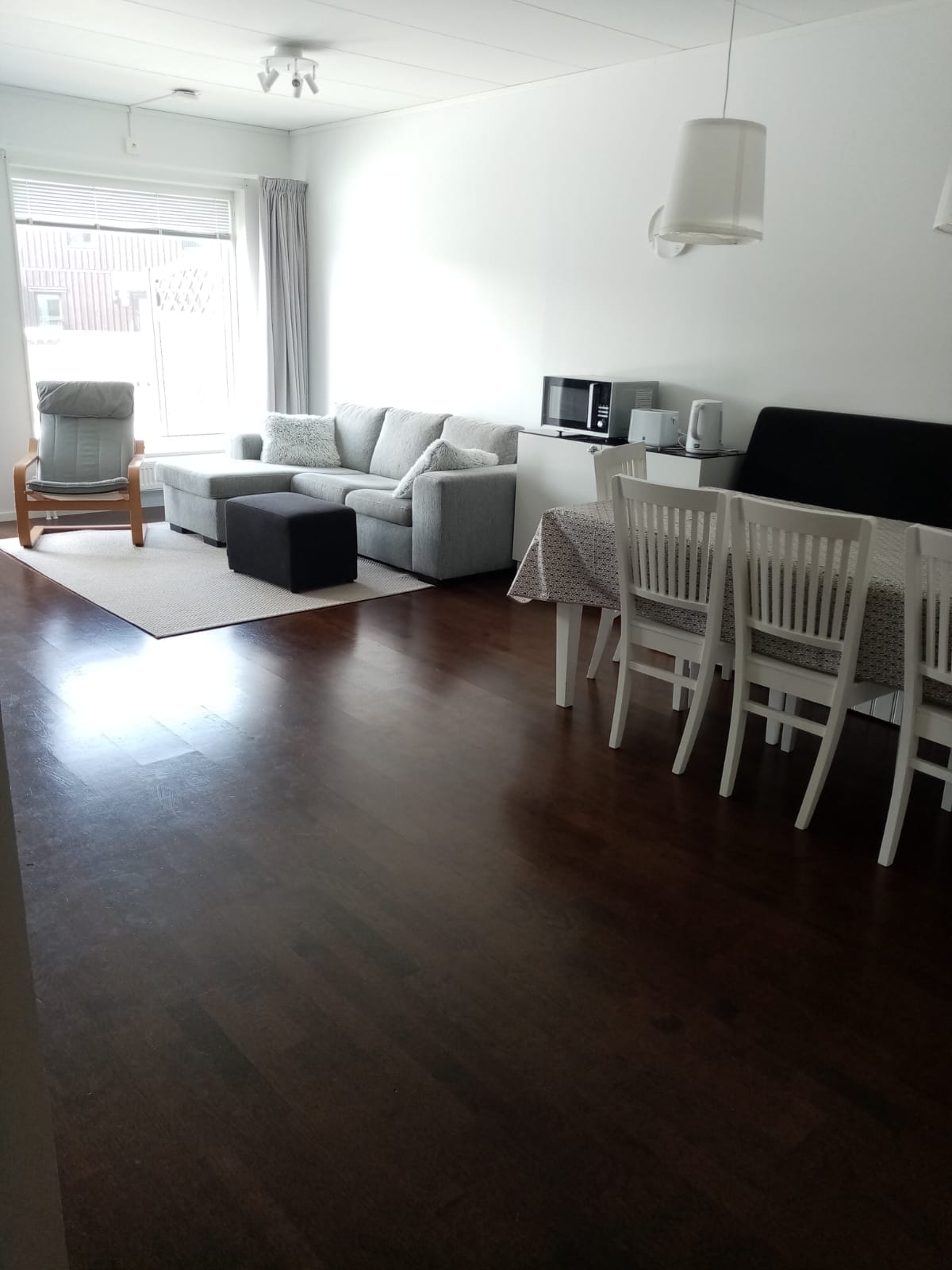 Luta dig tillbaka och koppla av i detta lugna, eleganta boende. Beskrivning Ski in/out med Kåvan Express. Lägenheten är 55 m2, rymmer 6 personer, fördelat på två sovrum. Entréväg, ett torkskåp Kök/vardagsrum: Fullt utrustat, bord med plats för 6 personer, soffa, TV och Wi-Fi, streaming med Chromecast. Sovrum 1: En dubbelsäng, 2 personer Sovrum 2: Två våningssängar, 4 personer. Badrum: WC, dusch och bastu. Slutstädning kan läggas till mot betalning. Bäddset/lakan samt handdukar ingår ej.