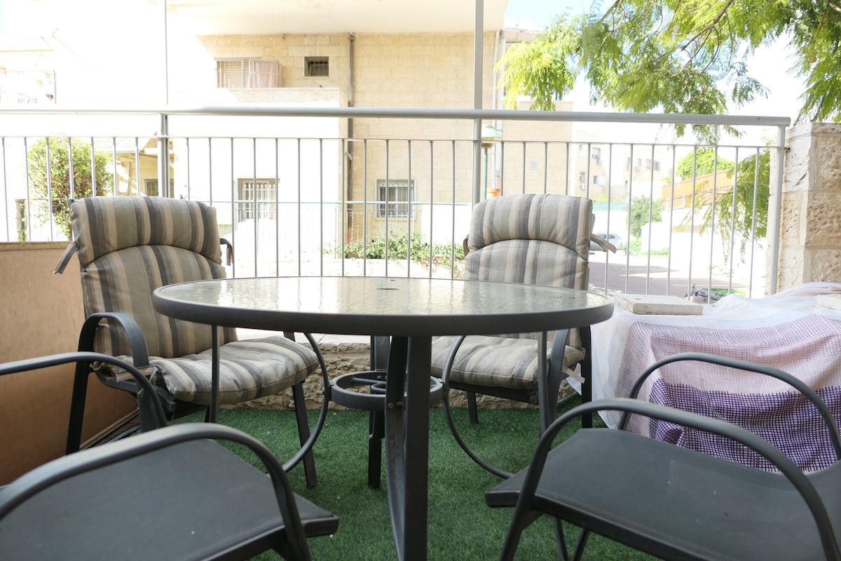 Dieses begehrte Apartment an der trendigen Ha-Rav Kuk Street ist angesichts der Nähe zum geschäftigen Downtown Triangle erstaunlich ruhig. Genieße die Gelassenheit des plätschernden Brunnens im Innenhof, spaziere dann durch die lebhafte Fußgängerzone der Ben Yehuda Street, durchstöbere die farbenfrohen Produktstände des Mahane Yehuda-Marktes im Freien oder nimm die Jerusalem Light Rail in die Altstadt und den Hauptbusbahnhof, wo du in weniger als einer halben Stunde mit der Bahnstrecke Tel Aviv-Jerusalem zum Flughafen Gurion fahren kannst.