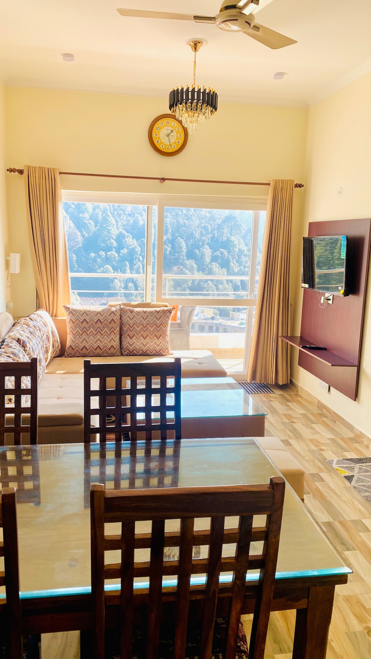 ‘Clarks Inn hotel’ Near Kainchi Dham is located in Bhowali, Nainital short drive (about 15 minutes) from the hotel to neemkaroli baba temple, offering a blend of modern comfort and serene Himalayan views, with amenities like restaurants, WiFi, parking, and family-friendly rooms, ideal for spiritual travelers and tourists exploring Nainital's nearby attractions. Stay at our serene 2BHK VIP Apartment at clarks Residences (Hotel Clarks Inn) showing breathtaking panoramic vistas of the mountains.