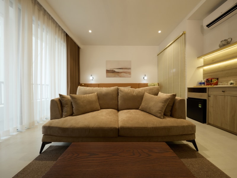Set on a fresh, tree-lined street in the heart of Saigon, this residence stands out instantly. The building feels nicely designed, and the calm, leafy neighborhood keeps everything cool and peaceful while iconic landmarks stay just steps away. Inside, the suite is bright, elegant, and fully renewed, with every detail set for a long, comfortable stay. Open the curtains and the city spreads out in a wide, beautiful view.