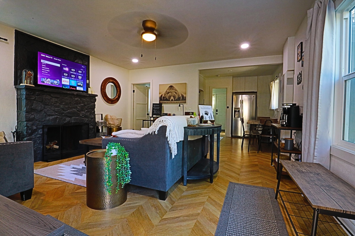 KOSTENLOSER Zugang zu einem Badestrand am See! Das Maple Cottage ist ein charmantes, familienfreundliches Ferienhaus, das mit stilvoller Einrichtung und dem gleichen Komfort wie zuhause ausgestattet ist, den deine Familie für den perfekten Bergurlaub benötigt. Genieße den Seeweg (nur fünf Gehminuten) vom Ferienhaus. Das Haus ist von massiven Eichen umgeben, unter denen du auf der Terrasse sitzen kannst, während du deinen morgendlichen Kaffee genießt. Nachts kannst du unter dem riesigen Baldachin der Bäume sitzen, während die Kinder Marshmallows rösten.