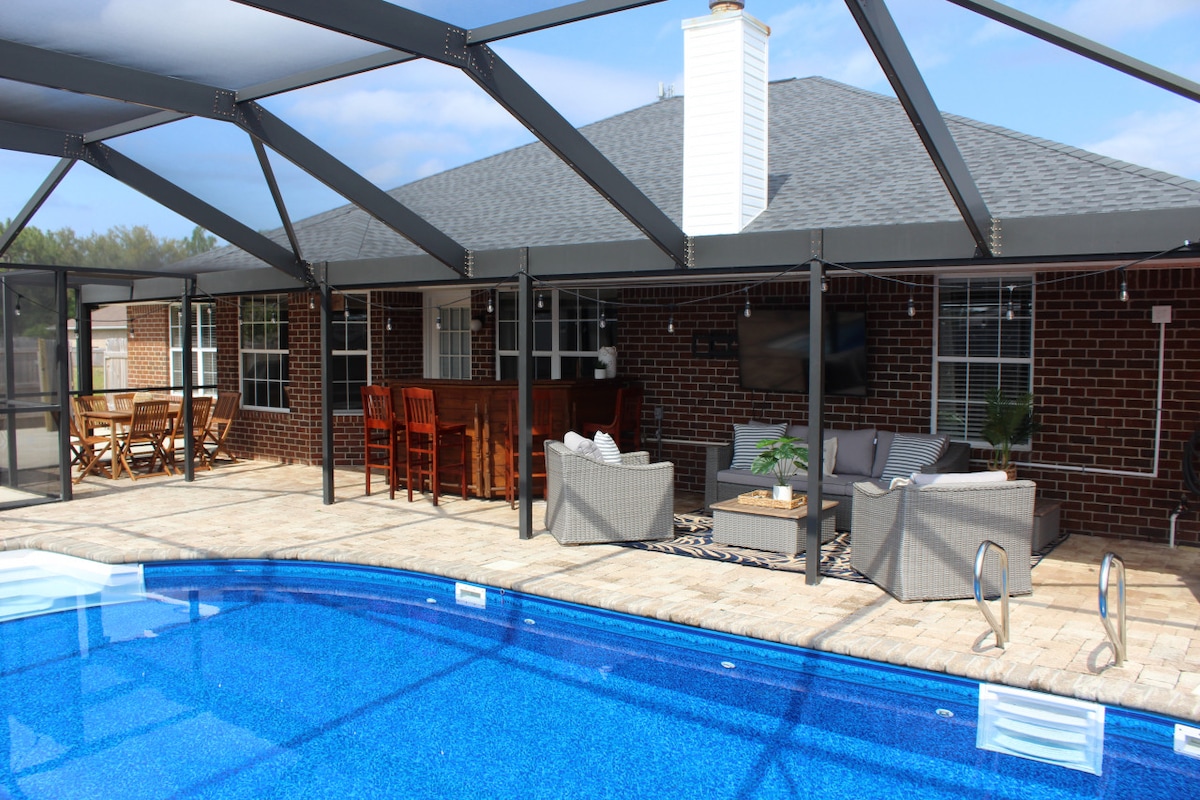Suchst du nach der perfekten Unterkunft für deinen Strandurlaub? Suchen Sie nicht weiter! Unser schönes, neu eingerichtetes Haus bietet alles, was Sie für den perfekten Urlaub benötigen, einschließlich Ihres eigenen privaten Pools und Whirlpools!!! Der Pool befindet sich in einer abgeschirmten Anlage (Tschüss, Insekten) und ist von einer überdachten Terrasse mit bequemen Sitzgelegenheiten, einer Sitzbar mit Getränkekühlschrank, einem Außenfernseher und einem Esstisch für sechs Personen umgeben. Oder lehn dich zurück und entspann dich am Pool in unserer Hängematte.