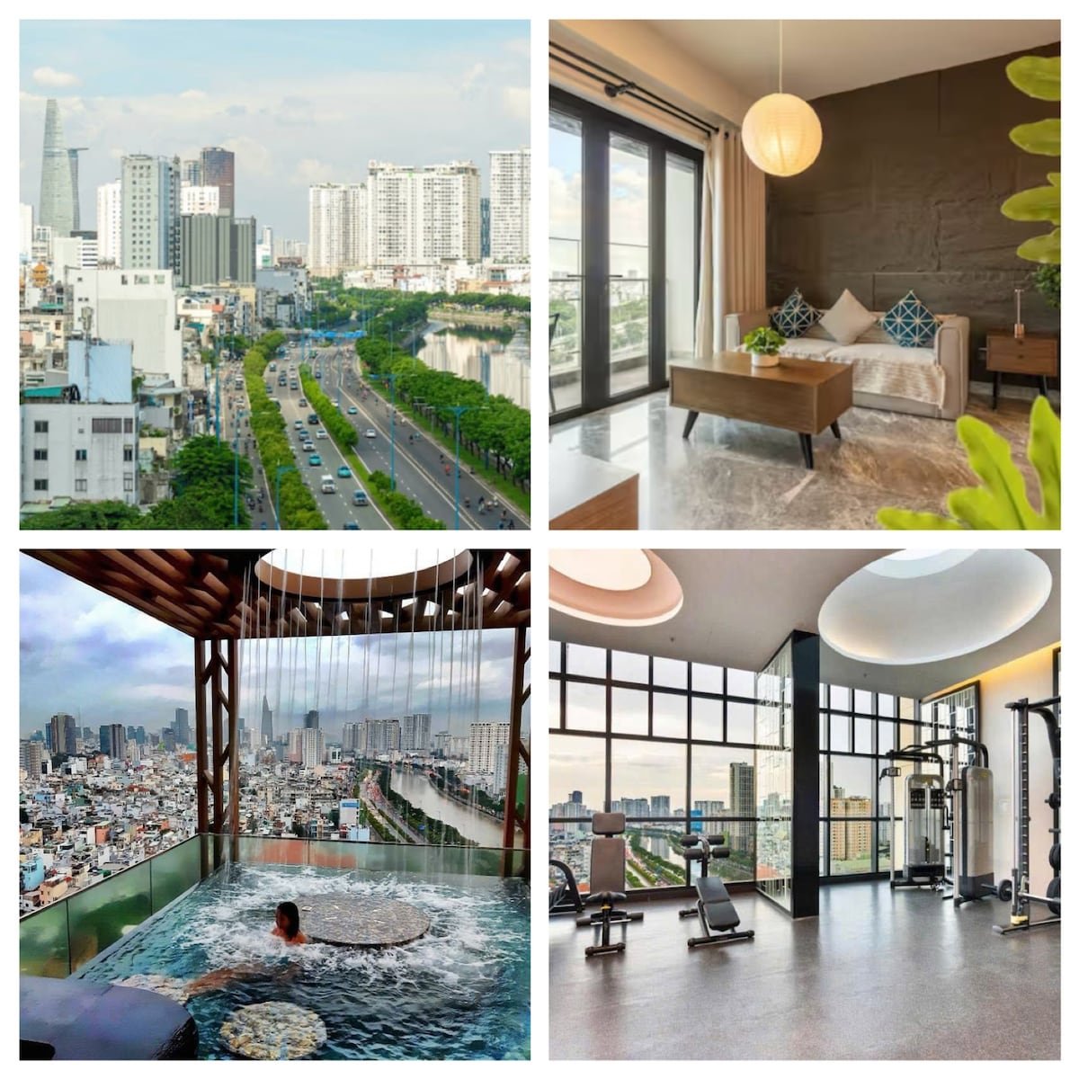 Diese 80 m² große🌟 5-Luxus-Wohnung befindet sich im 1. Bezirk mit Blick auf den Fluss und die ganze Stadt, eine erstklassige Lage in der Nähe von Bui Vien, Ben Thanh Market und Nguyen Hue Walking Street im Umkreis von 2 km. Das Apartment verfügt über 2 Schlafzimmer (3 Betten, darunter 2 Kingsize-Betten 1,80 m x 2 m und 1 Queensize-Bett 1,40 m x 2 m), 2 Badezimmer und komplette Einrichtungen wie einen Infinity-Pool mit Salzwasser, einen Fitnessraum, eine Trocken- und eine Nasssauna. Genieße das gemütliche Gefühl, in diesem modernen Gebäude zu Hause zu sein.