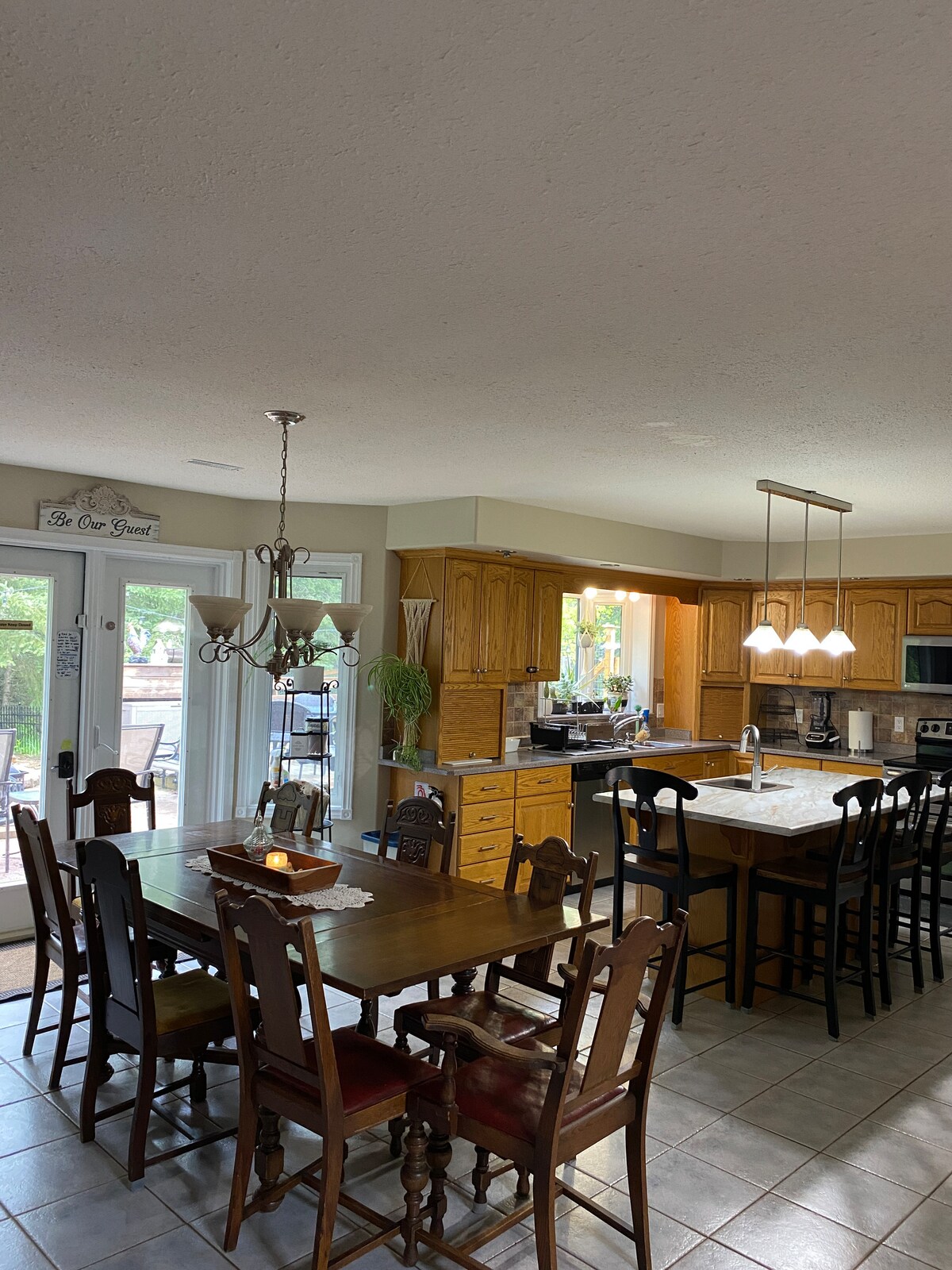 *KEINE BUCHUNG DURCH DRITTE* ALLE ÜBERNACHTUNGSGÄSTE UND HAUSTIERE MÜSSEN REGISTRIERT WERDEN. 50 US-Dollar GEBÜHR FÜR HAUSTIERE. Kellersuite mit umfangreicher Schalldämmung, einschließlich zwei Schlafzimmern mit Doppelbetten, Kommoden, Schränken mit Kleiderbügeln und Ausgangsfenstern. Die Küche hat die meisten Dinge, die du brauchst, siehe Fotos. Küchentisch mit Sitzgelegenheiten für vier Personen. Erdgasgrill auf Anfrage bereitgestellt. Das Badezimmer verfügt über Handtücher, Föhn, Bügeleisen und Pflegeprodukte. Das Wohnzimmer verfügt über ein ausziehbares Sofa, Stühle und einen Schreibtisch, einen 34-Zoll-LG-Smart-TV mit Prime.