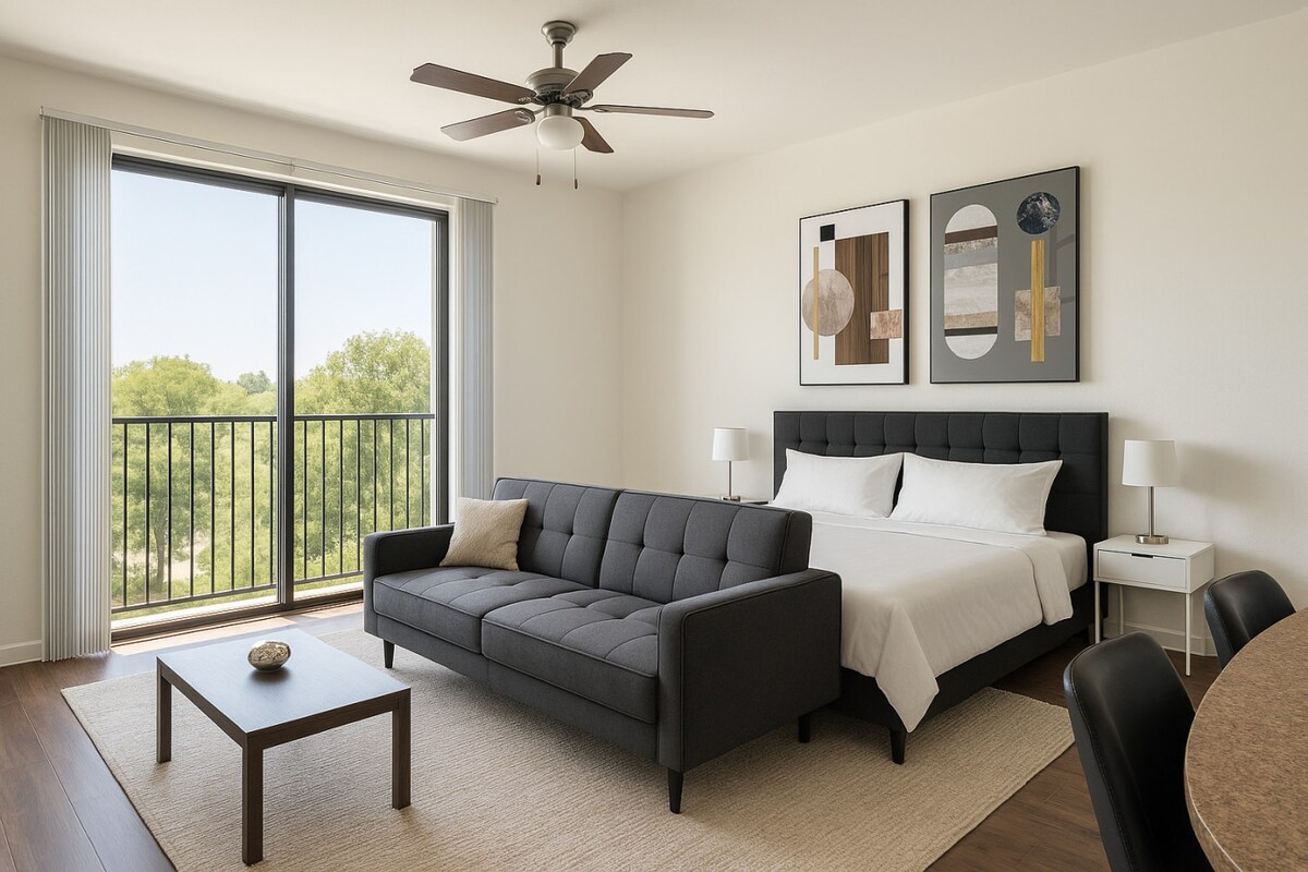 Wir präsentieren: Ausblicke vom 6. Die Studio Penthouse Suite ist ein Hauch von modernem und herrlichem Grundriss. Sie ist mit der neuesten Technologie Alexa Smart Home ausgestattet. Du kannst die LED-Leuchten mit deiner Stimme steuern und in jede gewünschte Farbe ändern. Ausgestattet mit einer Küche, Waschmaschine und Trockner musst du nicht mehr weggehen! Und vergiss die Annehmlichkeiten nicht. Restaurants befinden sich im Gebäude! Das Parken ist kostenlos, aber der Anhänger erfordert eine Kaution von 50 US-Dollar. Und die Dachterrasse ist ein Vibe! Komm und schau es dir an.