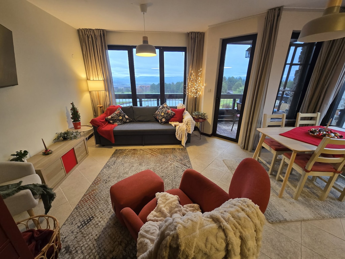Entspanne dich mit der ganzen Familie oder Freunden in dieser friedlichen Unterkunft. Die Wohnung befindet sich im zweiten Stock des Local Stay Hotels. Die Umgebung ist sehr ruhig und entspannend. Es gibt einen Spa-Bereich, Fitness, Salzraum, Coworking-Center und Swimmingpool. An einem sonnigen Tag kannst du deinen Kaffee auf der Terrasse mit herrlichem Blick auf die Berge genießen. Die Skigondel ist etwa 15 Fahrminuten von der Unterkunft entfernt. Im Sommer kannst du mehrere Wanderwege erkunden.