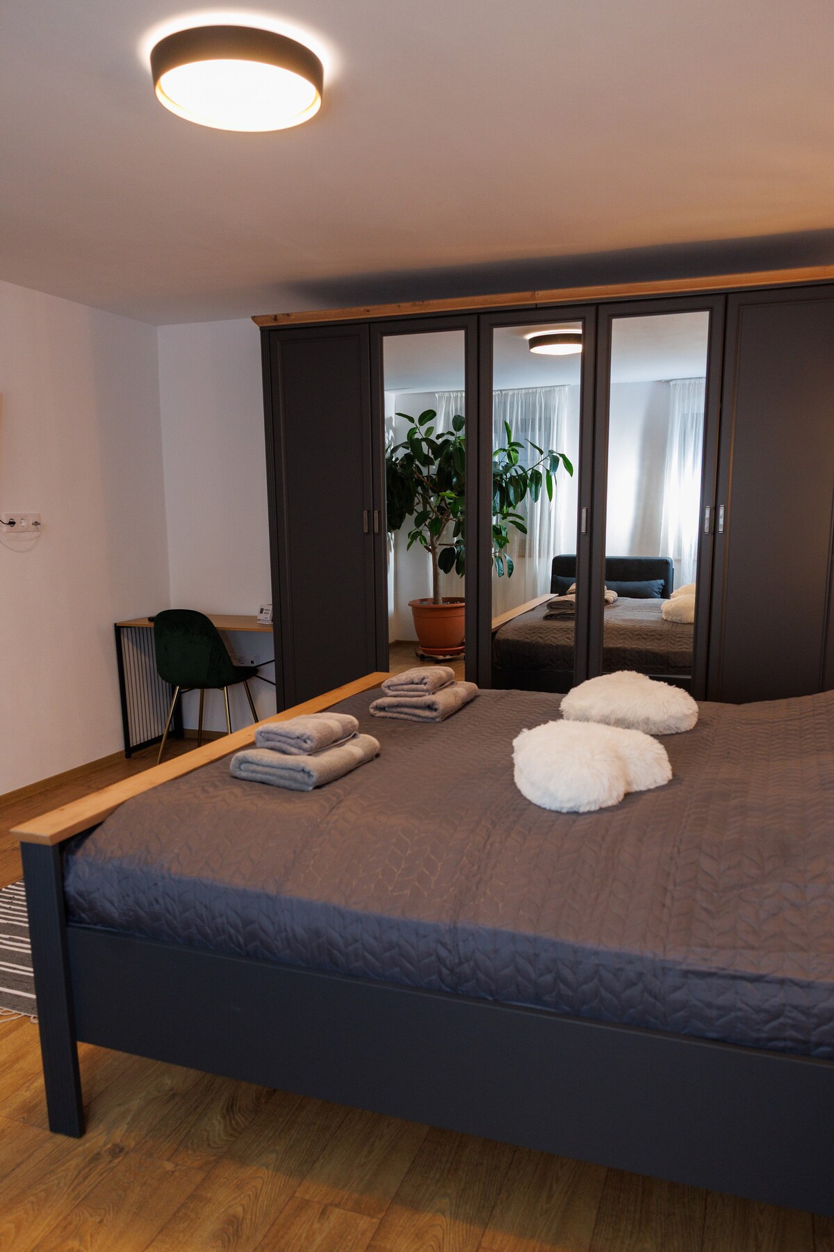 Die Wohnung befindet sich im zentralen Bereich, genauer gesagt hinter dem Rathaus, eine Minute zu Fuß entfernt ist der Supermarkt Lidl Penny und Profi, fünf Minuten entfernt der zentrale Markt. Die Unterkunft (100 m²) Die Wohnung verfügt über zwei Schlafzimmer mit Doppelbetten und ein geräumiges Wohnzimmer mit Schlafsofa und zwei Badezimmer mit Dusche und Badewanne Voll ausgestattete und mit dem Nötigsten ausgestattete Küche. Zugang für Gäste Küche Bad Terrasse Ankleidezimmer. Die Wohnung befindet sich im 1. Stock eines neuen und neu renovierten Gebäudes.