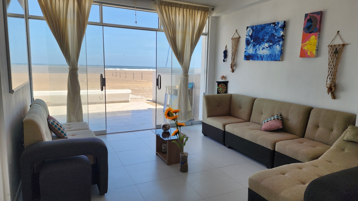 Entdecke eine gemütliche Wohnung in der privaten Eigentumswohnung Laguna Azul en Tacna, ideal für einen unvergesslichen Urlaub. Mit einem Wohnzimmer, das sich perfekt zum Entspannen eignet, einer voll ausgestatteten Küchenzeile und zwei kompletten Badezimmern bietet es Komfort und Luxus. Die drei Schlafzimmer sind elegant eingerichtet: das Hauptschlafzimmer mit einem Queensize-Bett und einem eigenen Bad und die anderen mit vielseitigen Gruppenbetten. Buche jetzt und genieße einzigartige Momente am Meer. Wir warten auf dich!
