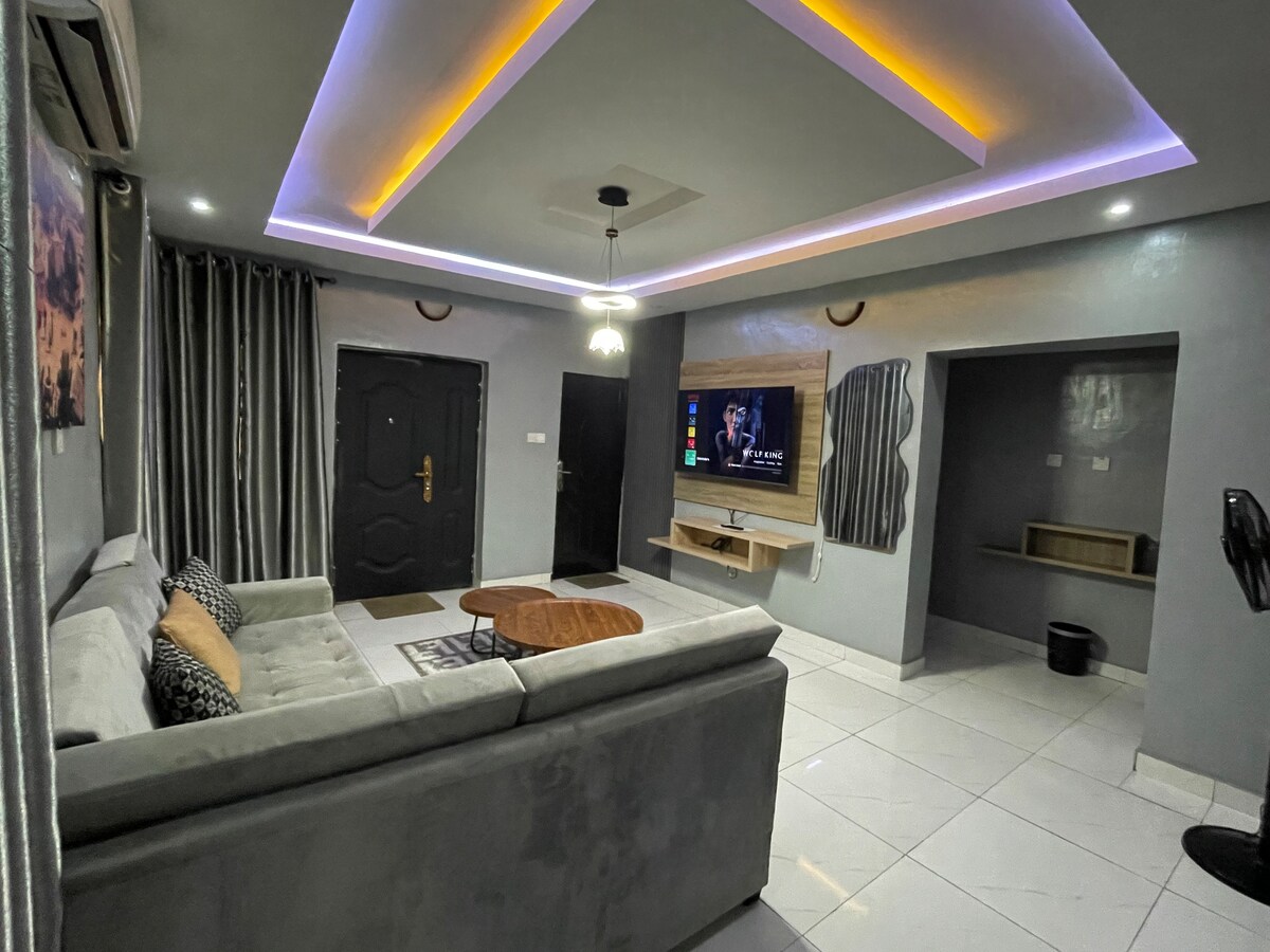 D'EXQUISITE APARTMENTS, neu gebaut im Januar 2024 mit hochmodernen Luxus-Annehmlichkeiten in einer ruhigen, friedlichen, familienfreundliche und einzigartige Umgebung in der Nähe von Sehenswürdigkeiten , Einkaufszentren, Lounges/Bar usw. 24/7 Strom, kostenloses Internet/WLAN, kostenlose Parkplätze und geräumige Anlage, die für Partys/ Zusammenkünfte genutzt werden können. In dieser geräumigen und besonderen Unterkunft mit Sicherheitspersonal rund um die Uhr und unterstützendem Personal vor Ort für kostenlose Reinigungsdienste wird sich die ganze Gruppe wohl fühlen.