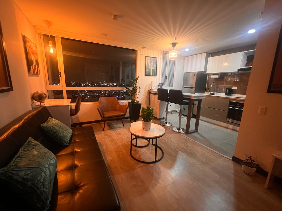 Mit einem herrlichen Blick über Bogota ist diese gemütliche und komfortable Wohnung der beste Ort, um die Stadt zu genießen. Highspeed-Internet. In der Nähe von Restaurants, Cafés, Supermärkten. Sehr zentrale Lage, um sich in Bogotá fortzubewegen, mit einfachen öffentlichen Verkehrsmitteln vor dem Gebäudeeingang. Tolle Dachterrasse mit 360-Grad-Blick und Grillzone, Fitnessraum, Tagungsräumen, Fahrradparkplätzen und Privatparkplätzen. Sicherheit rund um die Uhr.
