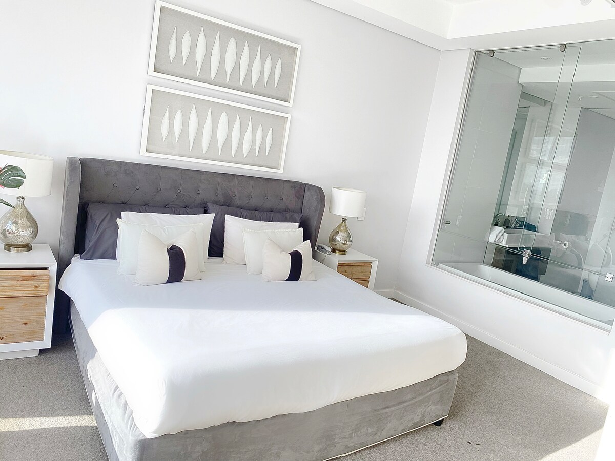 Ein helles und geräumiges Loft-Apartment mit 2 Fernsehern, Netflix, uneingeschränktem WLAN und Klimaanlage/ Heizung. Für den Lounge-Fernseher, das WLAN und deine mobilen Geräte ist ein Notstromaggregat vorhanden. Der überdachte Unterhaltungsbereich im Obergeschoss ist der ideale Ort zum Entspannen und Erholen mit einem Gas-Braai, Sofas im Freien und ausziehbaren Jalousien. Die Wohnung ist voll ausgestattet und verfügt über eine Waschmaschine mit Trockner. Das Anwesen verfügt über einen Swimmingpool, einen Veranstaltungsbereich und einen Torhaus-Sicherheitsdienst mit Patrouillingswachen rund um die Uhr.