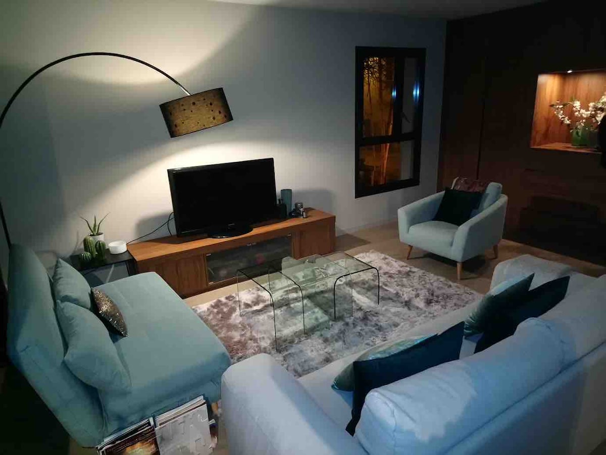 Sie werden in einer 50 m2 großen, warmen und gemütlichen Unterkunft sein Das Hotel liegt in einem Einfamilienhaus mit separatem Eingang, sehr ruhig, im Erdgeschoss mit Zugang zu den Gartenmöbeln im Freien, so dass Sie Ihre Mahlzeiten im Freien genießen und sich im Schatten eines Kirschbaums mit Blick auf die Berge ausruhen können. Großer Parkplatz Schneller Zugang zum Stadtzentrum: alle Geschäfte, Mediathek, Schloss, Kino, Schwimmbad.
