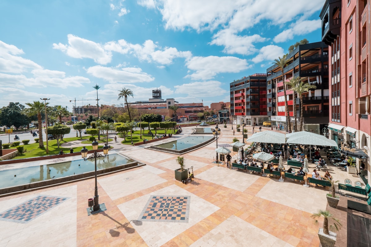 ✨Neue, stilvolle 1BR-Wohnung nur wenige Schritte vom Majorelle-Garten entfernt 🌿 Genieße einen komfortablen Aufenthalt mit hochwertigen Möbeln, schnellem WLAN, zwei Smart-TVs (55 Zoll im Wohnzimmer, 43 Zoll im Schlafzimmer), einer voll ausgestatteten Küche und einem gemütlichen Balkon mit schöner Aussicht 🏡 Das Hotel liegt in einer ruhigen Residenz in der Nähe von Cafés, Geschäften, Taxis und dem Stadtzentrum von Guéliz. Perfekt für Paare, Alleinreisende und Geschäftsreisen, konzipiert für Komfort, Entspannung und ein unvergessliches Marrakesch-Erlebnis ✨.