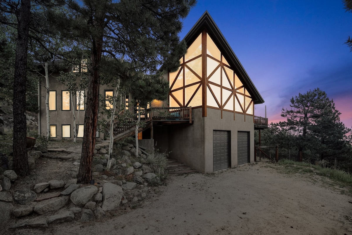 Genieße einen atemberaubenden 270-Grad-Blick und entspanne dich stilvoll für einen unvergesslichen Bergurlaub. 12 Min. mit Uber in die Innenstadt von Boulder/Pearl Street oder großartige lokale Wanderungen. Erlebe wunderschöne Sonnenuntergänge oder Yoga auf der Terrasse und beobachte die Sterne inmitten des stilvollen, modernen Dekors aus der Mitte des Jahrhunderts. Mach einen Spaziergang mit Blick auf die Rockies, Flatirons und die Innenstadt von Denver. Arbeite mobil mit Starlink superschnelles Internet mit Aussicht von allen Zimmern. Maximal 2 Gäste für Gelassenheit. Queensize-Bett. Keine Haustiere/Kinder, keine Ausnahmen