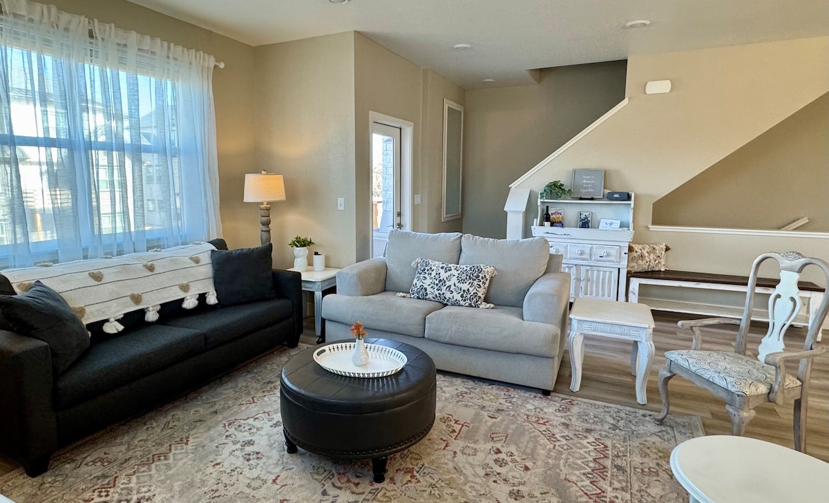 Ein privates Stadthaus, OFF-THE-DIAGONAL, zentral in Longmont gelegen mit schnellem Zugang zu Boulder (14 mi), Denver (38 mi) und dem Rocky Mountain National Park (36 mi). Entspanne dich in Komfort mit 2 Hauptschlafzimmern mit Kingsize-Betten, begehbaren Kleiderschränken, Smart-TVs, Schreibtischen und Badewannen. Lokale Restaurants, Brauereien und Lebensmittelgeschäfte sind zu Fuß erreichbar. Genieße die voll ausgestattete Küche mit Töpfen/Pfannen, einem kompletten Satz Geschirr, Kochutensilien und einer Kaffeemaschine.
