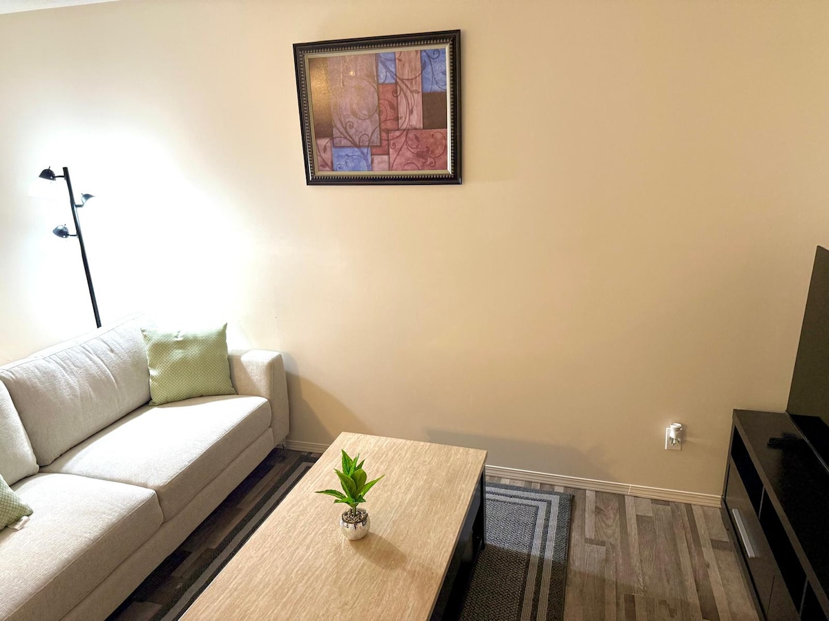 Diese wunderschön gestaltete Kellersuite mit 2 Schlafzimmern bietet eine perfekte Mischung aus Stil und Komfort. Schlafzimmer mit gemütlichen Queensize-Betten, ein gemütlicher Wohnbereich mit einem Flachbild-TV und eine voll ausgestattete Küche, ideal für Familien, Freunde oder Geschäftsreisende. Genieße das komplette Badezimmer, die hauseigene Wäscherei, Highspeed-WLAN und den privaten Eingang mit eigenem Parkplatz. Diese Suite befindet sich in einer sicheren Gegend mit einfachem Zugang zu Einkaufsmöglichkeiten und Restaurants und bietet alles, was du für einen erholsamen und stressfreien Aufenthalt benötigst.