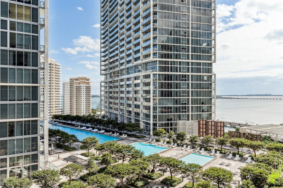 ✨ Über diese Unterkunft Willkommen in deinem luxuriösen Rückzugsort mit einem Schlafzimmer im Icon Brickell, der sich im selben Turm wie das W Hotel befindet. Mit Blick auf die lebendige Brickell Avenue und die Biscayne Bay ist diese stilvolle Unterkunft perfekt für Geschäftsreisende, Urlauber oder eine Mischung aus beidem. Gäste haben Zugang zu einem der berühmtesten Pools von Miami, einem Fitnesscenter von Weltklasse und einem Spa mit umfassendem Service. Tritt nach draußen und du bist im Herzen von Brickell — umgeben von Einkaufsmöglichkeiten, Restaurants und Nachtleben, die alle zu Fuß erreichbar sind.