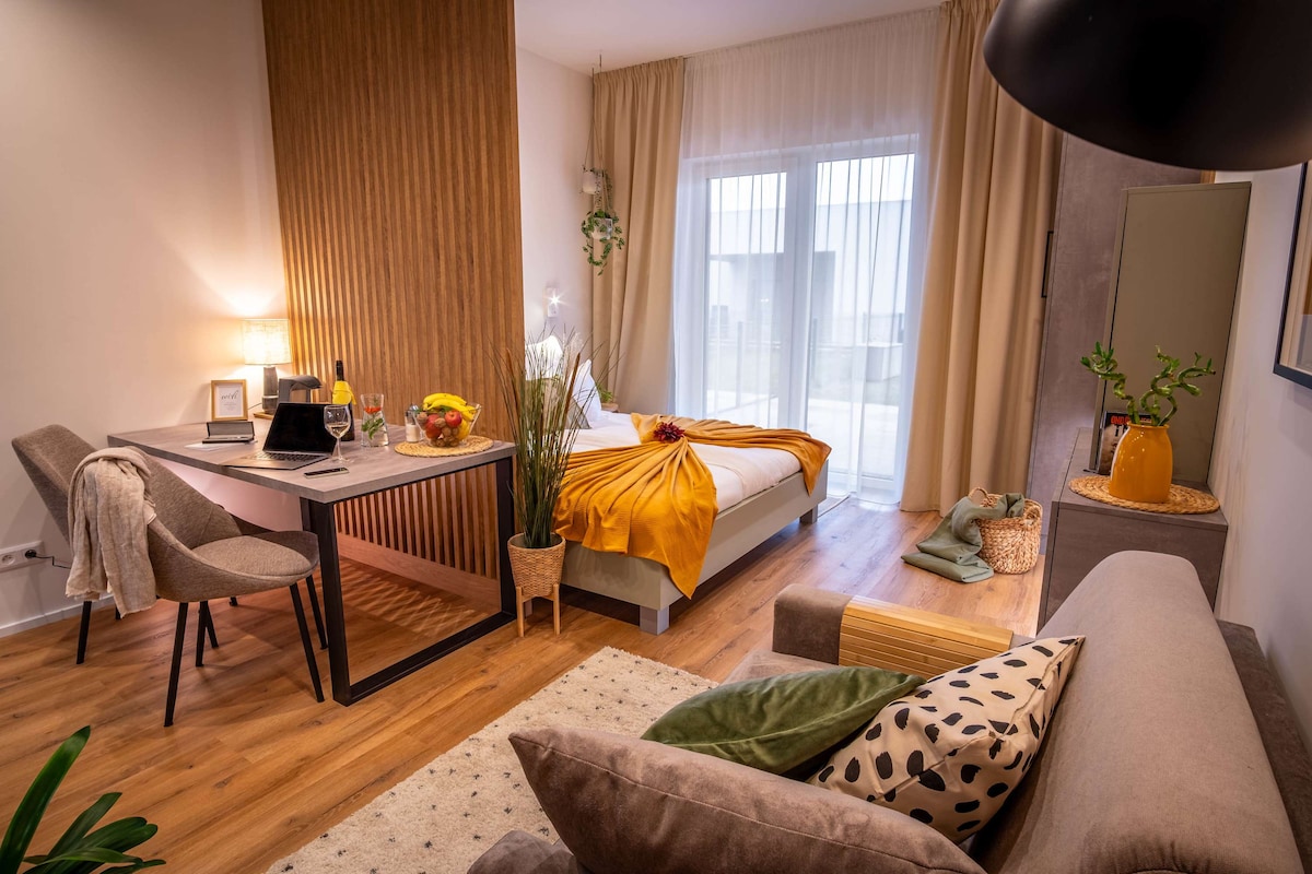 Dieses Studio-Apartment von 86 m² befindet sich im Erdgeschoss und verfügt über Fenster mit Blick auf den Garten. Die Wohnung verfügt über eine private Terrasse, die sich perfekt zum Entspannen eignet. Es verfügt über einen eigenen Eingang und liegt günstig neben unserem ruhigen Parkplatz, um maximalen Komfort zu gewährleisten. Wichtiger Hinweis: Es tut uns leid, aber der Whirlpool in dieser Wohnung ist vorübergehend außer Betrieb. Danke für dein Verständnis.