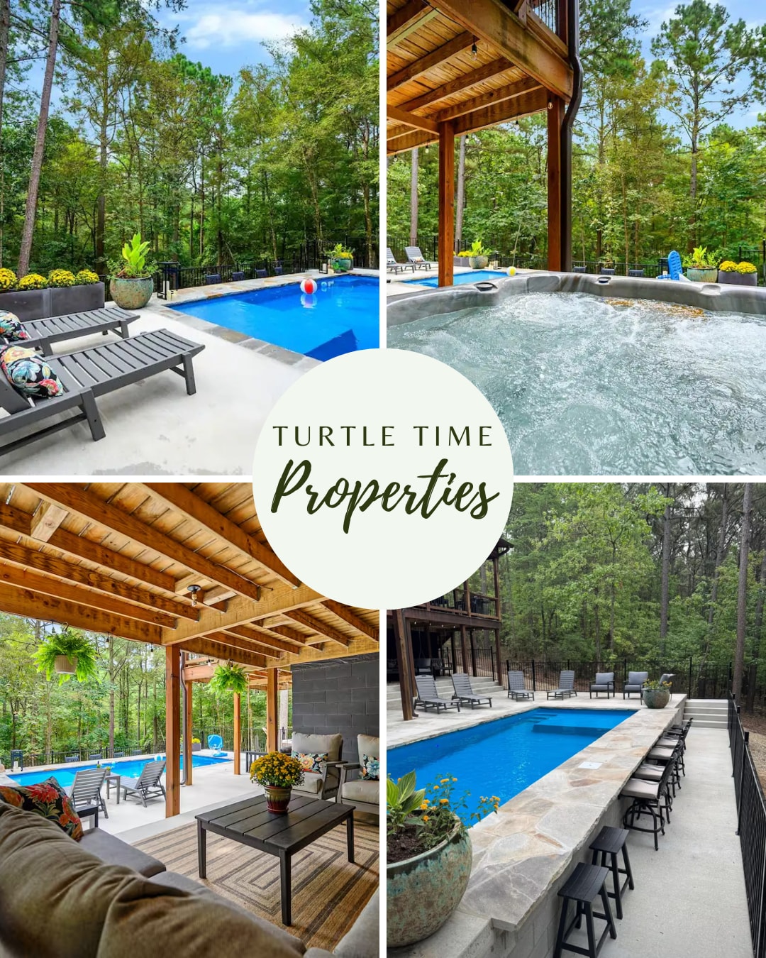 Entfliehe in die Starry Escape, eine luxuriöse Hütte inmitten von Kiefern mit atemberaubender Aussicht. ☀️ Geräumige umlaufende Terrasse mit herrlichem Blick auf den Wald 🍖 Eingebauter Außengrill ♨️ Entspannender Whirlpool inmitten der Bäume 🔥 Gemütlicher Außenkamin und Feuerstelle, perfekt für Zusammenkünfte 📍 3-minütige Fahrt zu lokalen Geschäften und Restaurants ✭ „Ein toller Aufenthalt für Familien.“ Viel Platz für Kinder und ruhige Morgen, um Rehe bei einer Tasse Kaffee zu beobachten..."