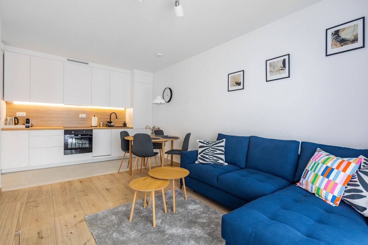 Ich biete eine stimmungsvolle Wohnung mit voller Ausstattung an, die deinen Aufenthalt einfacher macht. Die Wohnung befindet sich in einem modernen, überwachten Gebäude , das auch für Menschen mit Behinderungen geeignet ist, in der Nähe vieler Orte , Geschäfte ,Cafés ,Restaurants . Der Vorteil ist die Lage der Einheit in der Nähe der S8-Route und sehr gute Kommunikation mit Bussen, Straßenbahnen. Mit der U-Bahn erreichen wir das Zentrum von Świętokrzyska und das Nationalstadion. Ein kontaktloser Check-in ist ganz einfach.