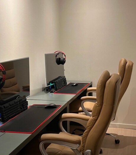 Zimmer mit kleiner Terrasse, Hochleistungs-PC und Badewanne