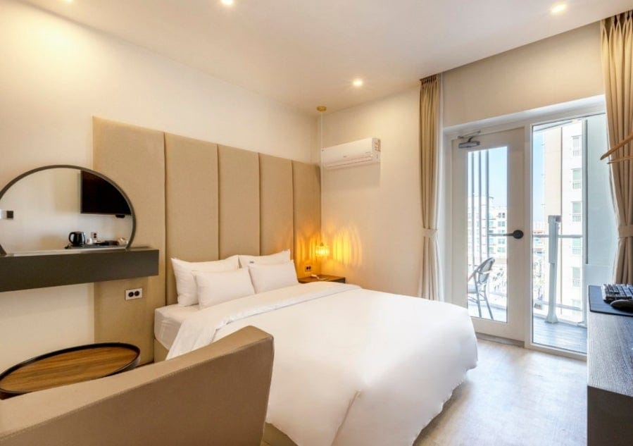 Modernes Zimmer mit kleiner Terrasse und Klimaanlage