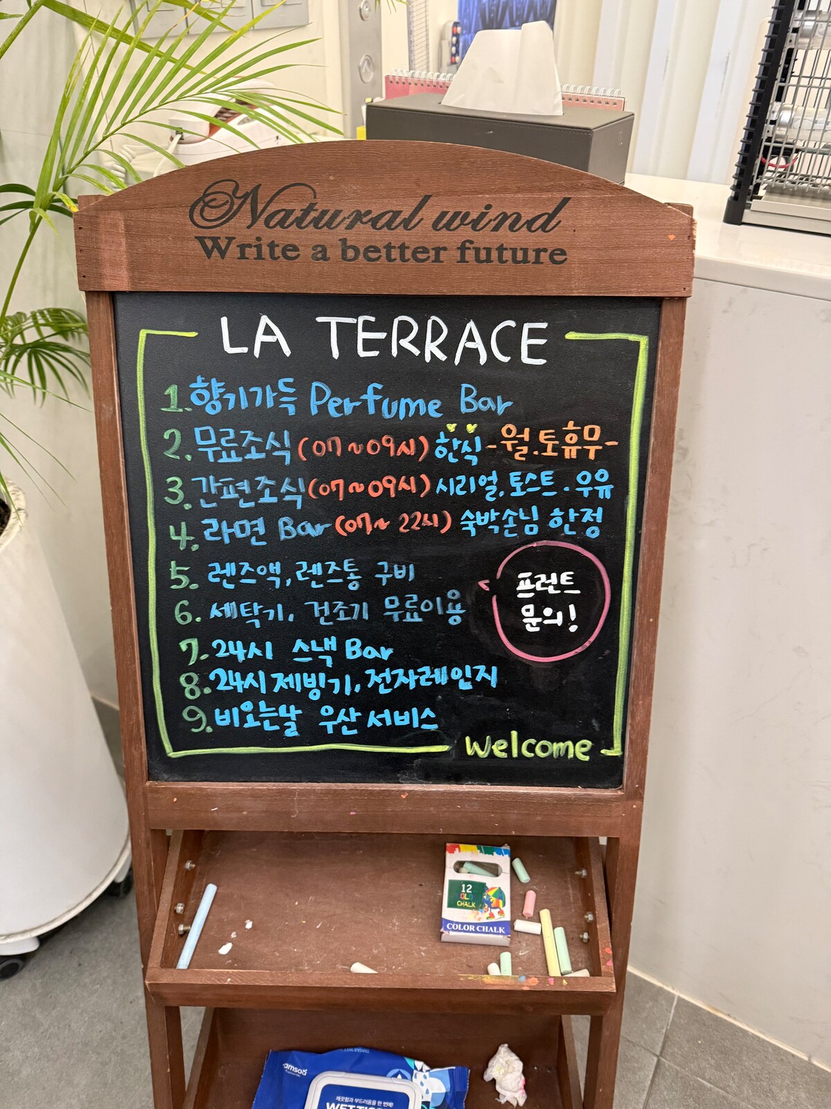 Das La Terrace Hotel setzt sich für die luxuriöse und entspannende Erholung unserer Kunden ein! * „Lateras Hotel“ bietet komfortable Zimmer und angenehme Aufenthalte. * Modernes Design, sauberes Hotel, wird deinen Wert verbessern. * Es ist das beste Hotel für Reisen & Sightseeing sowie Geschäftskunden. -WLAN in allen Zimmern - Netflix in allen Zimmern (persönlicher Ausweis erforderlich) - 5-Sterne-Bettwäsche - offene private Terrasse - Kostenlose Nutzung von Snackbar, Kaffee usw. - Top-Spezifikation-PC (GTX 3060, 32 '200Hz Monitor, Gaming-Tastatur-Maus-Headset) - Zimmer mit Styler & Waschmaschine & Trockner - Desinfektion von Zimmern und regelmäßige Quarantäne-Quarantäne durch professionelle Quarantäneunternehmen mit täglich sicheren Sterilisationsprodukten -Kostenes Frühstück (koreanischer Stil) -OTT 6 kostenlose Betrachtung (Netflix, Disney, Tibing, Watcha, Apple, Wave).