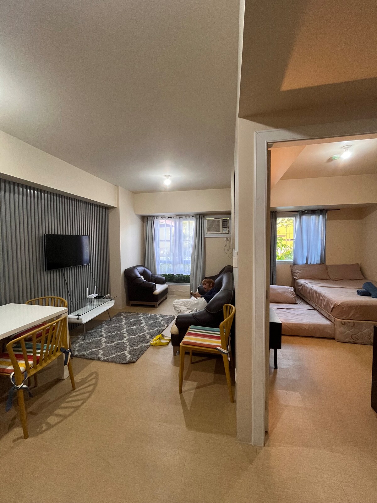 Willkommen in deiner urbanen Oase im Herzen der Innenstadt von Cagayan De Oro City! Wir haben diese Suite durchdacht gestaltet, um ein entspannendes Ambiente zu bieten, was sie zum perfekten Ort zum Entspannen macht. Lehne dich auf dem bequemen Sofa zurück, genieße einen Film im Smart-TV deines Schlafzimmers oder arbeite im speziellen Arbeitsbereich. Du kannst deine Lieblingsgerichte auch in unserer Küchenzeile mit Mikrowelle, Kühlschrank, Wasserkocher und Kochgeschirr zubereiten. Genieße deine Mahlzeiten in Ruhe an unserem gemütlichen Tisch für 4 Personen.