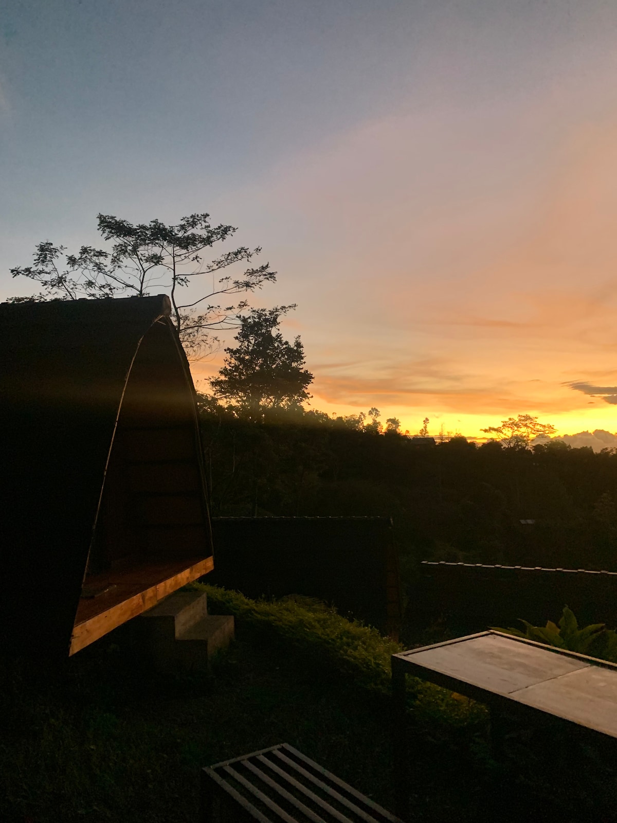 Glamping bei Sonnenuntergang im Giri-Garten, Munduk-Wanagiri